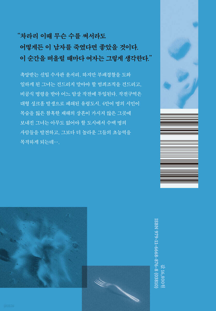 작품 속 세계에 최적화된 문장과 군더더기 한 톨 없는 대사가 준비된 장인의 솜씨다. 초능력 전투물의 기시감을 너끈히 지우고 한 걸음 더 나아간, 장르 고전 자리를 예약한 데뷔작. - 김창규 (SF 작가,번역가)