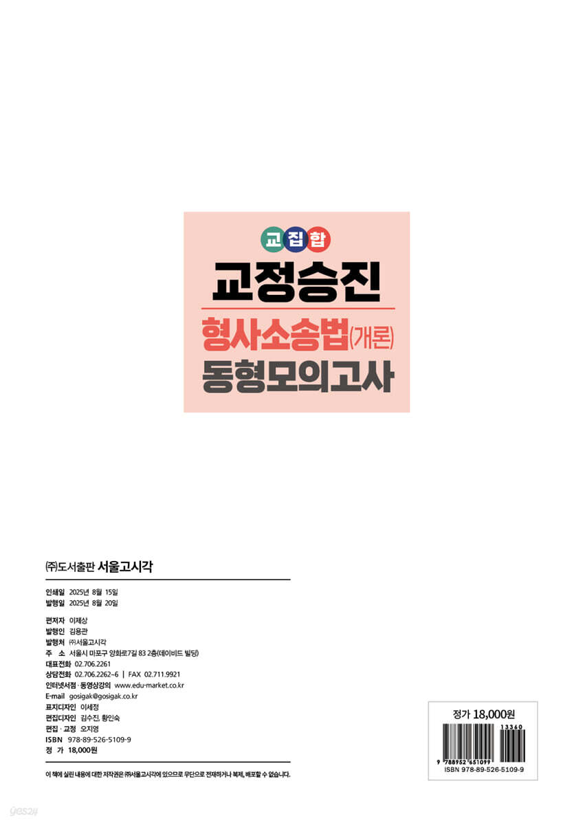 2026 교집합 교정승진 형사소송법(개론) 동형모의고사(6,7,8급)
