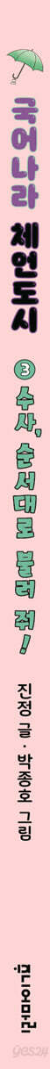 --- pp.11~12 “맞아. 고유어가 사라지다니 안타까워. ‘온’, ‘즈믄’ 요정들이 가루가 되어 하늘로 사라졌어. 우리 어린이들이 좋은 우리말을 많이 찾아서 써야 해. 그래야 요정들이 사라지지 않으니까.” --- p.16 길을 건너려면 출렁다리 디딤판을 완성하세요. 앞 디딤판 위에 단어가 있습니다. 이 단어들의 반의어가 새겨진 디딤판을 주변에서 찾아 연결하세요. 디딤판 10개를 연결하면 다리가 완성됩니다. 단, 출렁다리가 흔들리면 잠들어 있는 지네 괴물이 깨어날 수 있습니다. --- p.25 수사마을에 도착하니 신비한 광경이 펼쳐졌다. 어른 키만큼 큰 액자 세 개가 수사마을 입구에 둥둥 떠 있었다. 왼 액자에는 양 한 마리와 여러 색깔의 우산들이 공중에 떠 있는 그림이 담겨 있었다. 가운데 액자에는 쿠키가 만들어지고 있는 공장 모습을 담은 그림이었다. 그리고 오른 액자에는 수묵으로 그려진 산수화가 있었는데, 물 위에 작은 배 한 척이 떠 있는 그림이었다. --- p.46 ‘착’, ‘착’, ‘착’, ‘착’. 마치 병정들이 전투를 앞두고 한 발을 다른 발에 부딪치는 소리와도 같았다. 하늘은 우산 접히는 소리로 가득 찼다. “우산들이 접히고 있어! 뭐지?” 빗줄기는 더욱 거세어져 갔다. 비가 오는데 우산이 접히는 모습에 어리둥절하고 있을 때였다. 접힌 우산들이 일제히 방향을 바꾸어 산이 일행 으로 날아왔다. --- p.68 랑이가 ‘첫째’ 요정에게서 쿠키를 빼앗으며 말했다. “이 장치를 누르면 쿠키를 돌려줄게.” ‘첫째’ 요정이 이 말을 듣고 랑이가 가리키는 반죽 기계 장치를 꾹 눌렀다. 전원이 들어오고 반죽 통 안에서 반죽을 섞는 날이 돌돌돌 돌아갔다. --- p.95 “서원이군.” 랑이가 말했다. “서원이 뭐야?” 달리가 랑이에게 물었다. “응, 서원(書院)은 옛날에 선비들이 모여 공부도 하고 학문적 업적을 이룬 사람들을 기리기도 한 곳이야. 여기를 수색해 보자. 그림을 파괴할 방법을 찾을 수 있을 거야.” -108 ‘사’ 요정이 숨은 곳은 반딧불이 요정의 안내 덕분에 금방 찾을 수 있었다. 수풀 사이에 몸을 숨기고 있었으나 반딧불이 요정들을 따돌릴 수는 없었다. ‘사’ 요정의 이름표를 뜯어 나머지 피리 조각을 획득했다. 산이가 조각들을 연결하기 구멍이 일곱 개인 피리가 완성되었다. 피리 겉면에 ‘만파식적(萬波息笛)’ 글자가 나타났다. --- p.112 |