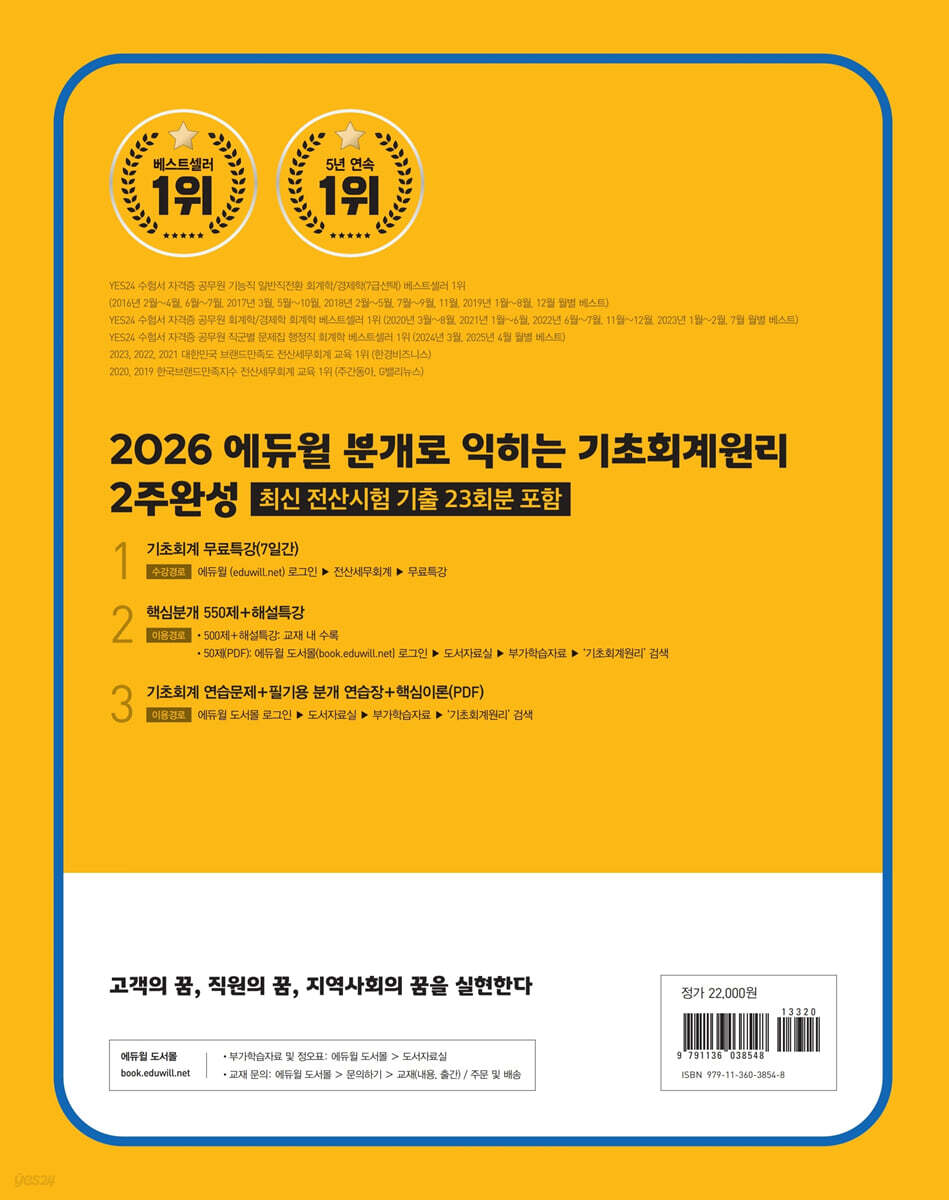 - 챕터별 핵심키워드 정리로 학습 방향 제시 - 빈출 및 핵심 이론에는 ‘중요’ 표시와 ‘형광펜’ 표시로 빠르게 파악 - 필수이론을 ‘보조단’에 한 번 더 정리하여 반복 학습 - 분개사례와 유형문제로 핵심이론 이해도 높이기 2) 최신 전산시험 기출 23회분&확인 문제로 시험 유형 파악 - 전산세무회계, AT 자격시험, ERP 정보관리사 등 최신 전산시험 23회분 기출문제 반영 - 페이지별 해설 수록으로 문제 풀이 후 빠르게 정답과 해설 확인 3) 핵심분개 550제 부록과 저자의 무료특강 - 시험 빈출 분개 유형을 담은 핵심분개 550제 제공(50제 PDF 포함) - 페이지마다 정답 분개 수록하여 빠르게 정답 확인 - 추가 해설이 필요한 문항은 저자의 무료특강을 통해 확실한 이해 가능 |