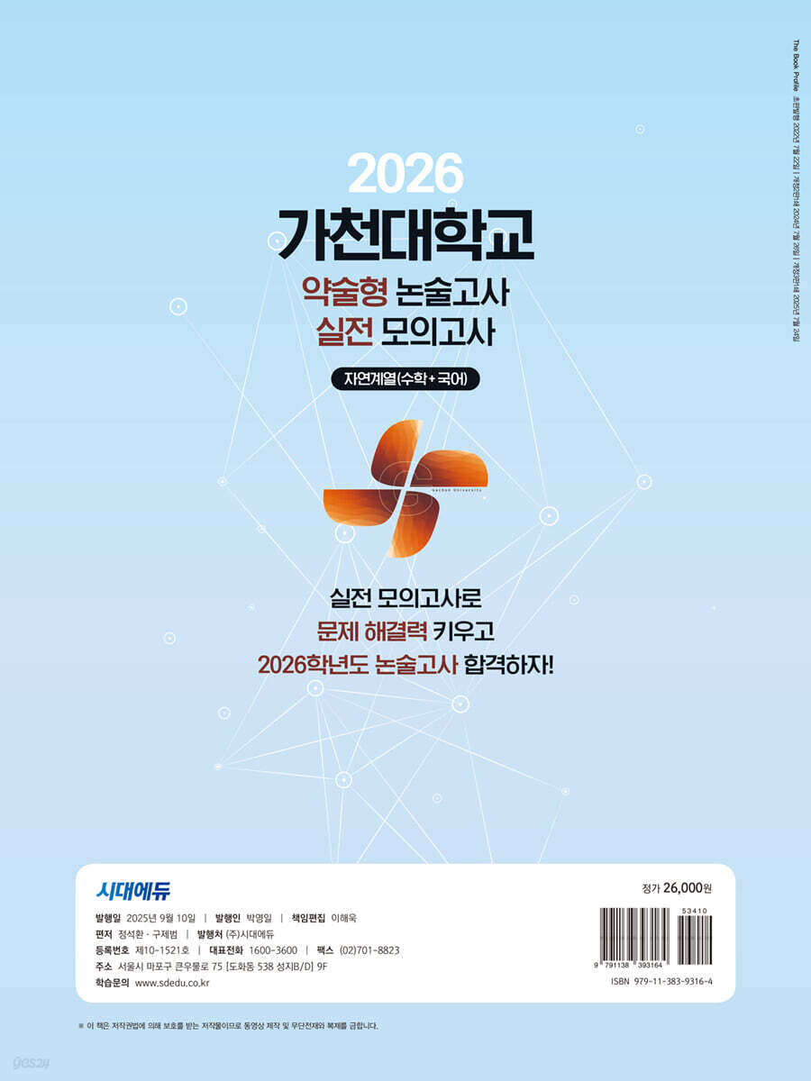 [본책] 가천대학교 약술형 논술고사 실전 모의고사 자연계열