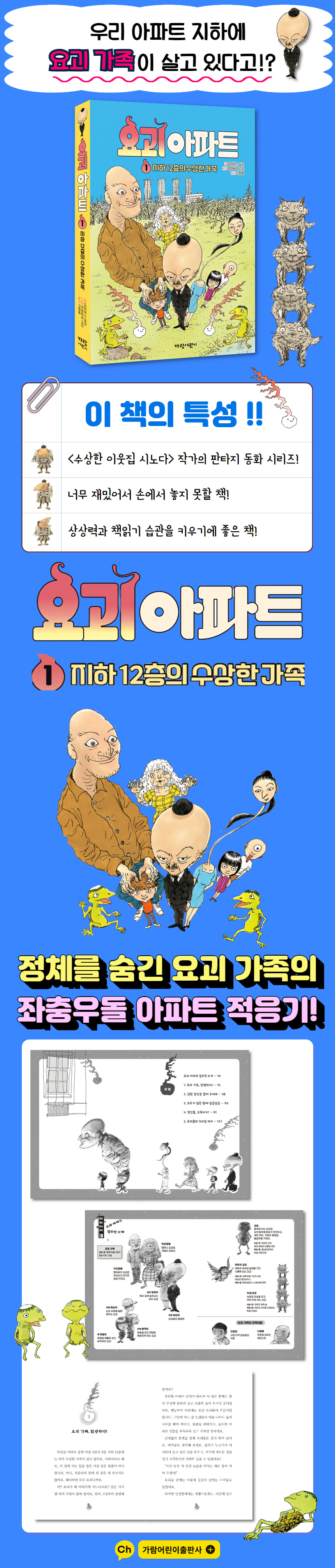 요괴 아파트 입주민 소개1. 요괴 가족, 탄생하다!2. 심한 장난은 참아 주세요3. 모두가 잠든 밤에 살금살금4. 당신들, 도둑이지?5. 요괴들의 100일 파티