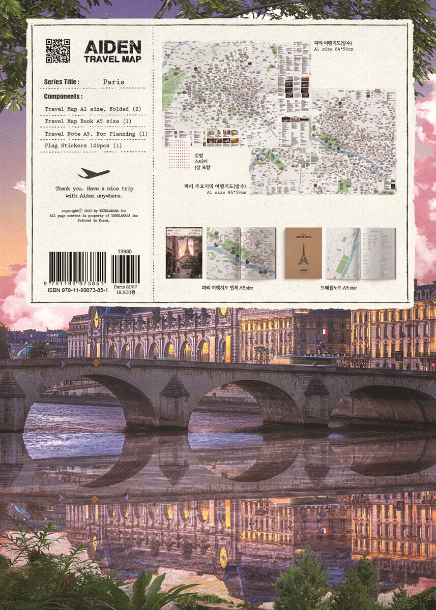 현재 기준 최신정보 업데이트 음식점 및 맛집 재정비 및 업데이트 최근 여행자들의 트랜드 동선 반영 최근 생겨난 지하철역 및 신규/변경 교통시설 반영 3대 벼룩시장, 야경명소 등 일반정보 대거 추가 각 랜드마크 지도위 사진 삽입 이 지도 하나 만으로도 여행계획을 짜고 여행중 이용 하시기에 충분합니다. 기존 가이드북은 무거운 짐일 뿐입니다. 아날로그는 진부한 것이고 아날로그는 나쁜것으로 잘못 인식이 되어있는 것 같습니다. 타블라라사 역시 디지털을 지향하고 있지만 현재는 아날로그 방식의 여행정보 제공 방법을 고수하고 있습니다. 왜냐하면 아날로그라고 해서 항상 불편한 것이 아니기 때문입니다. 디지털 기계로 제공하기 어려운 ‘편리함’을 찾아 아날로그가 끝날 그날까지 아날로그 종이로 제공할 것입니다. “에이든 파리 여행지도 2026-2027”는 ‘파리’ 지역을 여행하고자 하는 사람에게 동선과 여행정보를 한 눈에 볼 수 있도록 만들어주는 가장 효율적인 여행지도입니다. 기존 관광청에서 만든 무늬만 여행지도가 아닙니다. 자세한 정보도 담고 있어서 여행동선을 짜고 여행을 계획하기에 최적화 되어있습니다. 물론 싸진 않습니다. 그러나 한 장에 모든 정보가 담겨 있어 매우 편리하고 효용성이 월등하게 좋습니다. 그리고 이런 지도는 우리나라에 아니 전 세계에 “에이든 여행지도” 뿐이라고 단언합니다. 여행을 즐겁게 하기 위해서 시간을 절약하고 싶으시다면 이 지도를 꼭 선택해서 행복한 여행계획이 되시길 바랍니다. |