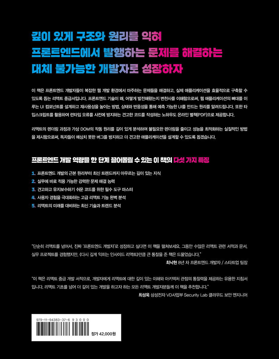 ‘단순히 리액트를 넘어서, 진짜 ‘프론트엔드 개발자’로 성장하고 싶다면 이 책을 펼쳐보세요.’
