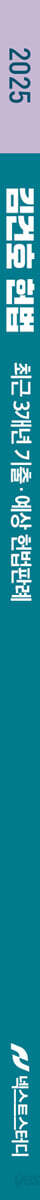 『2025 김건호 헌법 최근 3개년 기출·예상 헌법판례』 1. 시험 시행일 3년 이내의 최신판례도 20~30% 정도 출제되고 있기 때문에 고득점을 위해서는 최신판례 정리가 필수이다. 2022년 1월부터 2025년 6월까지 최근 3개년 판례 중 이미 출제되었거나 출제가 유력한 판례들을 정리하여 수록했다. 수록된 판례는 400여 개로, 최신판례를 완벽 반영하였다. 2. 객관식 헌법시험 기출의 60~70%가 판례지문을 활용하여 구성되기 때문에 판례의 결과를 정확히 숙지할 수 있도록 구성하였다. 기출된 판례는 기출지문을 설명과 함께 OX형태로 수록하였고, 미기출 중요판례의 경우 출제가 유력한 지문과 결정 이유만 수록하여 짧은 시간에 최대한 효율적으로 시험을 대비할 수 있다. 3. 유사한 제도에서 파생되는 다양한 판례들을 효율적으로 비교·정리하고 암기할 수 있도록 카테고리를 지어서 수록하였다. 또한, 판례에서 중요한 부분은 밑줄과 형광펜 처리를 하여 핵심을 한눈에 파악할 수 있으며, 교재 말미에 판례색인을 수록하여 효율적으로 학습할 수 있도록 구성하였다. |