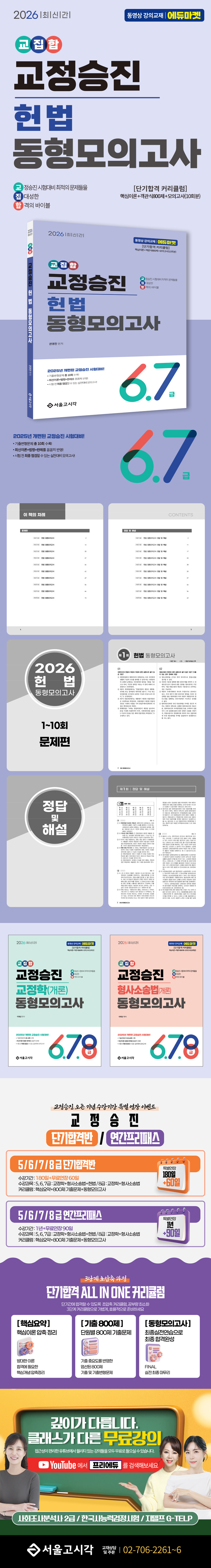 시험 준비의 마지막 단계로 동형 모의고사를 진행하는 단계입니다. 기출문제에서 주로 출제되는 포인트는 반드시 선택지에 넣었으며, 기출문제에 없지만 출제가능한 최신판례 또한 선택지에 포함시켜서 혹시 모를 최신 판례에 대한 출제 문제에 대비할 수 있도록 넣었습니다. 선택지 하나하나 꼼꼼히 체크하면서 공부하셔서 익혀두시면 승진 시험 문제에서 그대로 출제되는 느낌으로 시험을 보시게 될 것입니다.