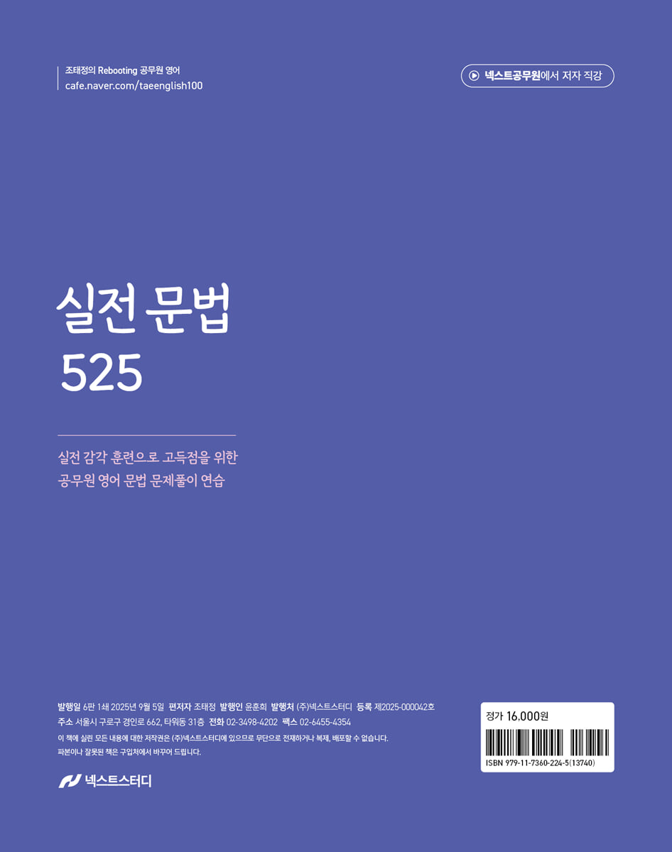 『2026 조태정 영어 실전 문법 525』의 특징은 다음과 같습니다.