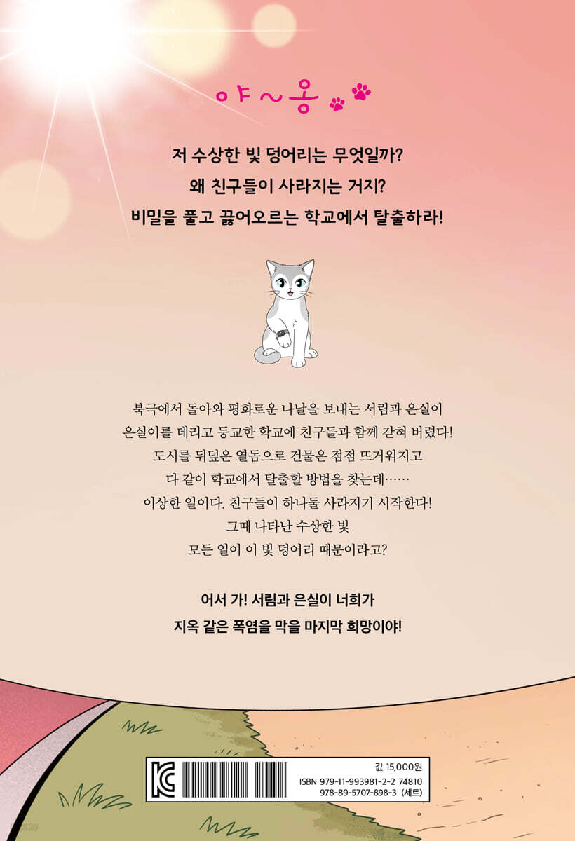 북극에서 돌아와 평화로운 나날을 보내던 서림과 은실이. 과학 수업에서 반려동물을 소개하는 시간을 갖기로 하고 서림과 반 친구들은 학교에 모이기로 한다. 그런데 갑자기 도시에 생긴 열돔으로 숨 막히는 더위가 몰려들고 설상가상 전기마저 차단되며 학교에 갇히게 되는데······.