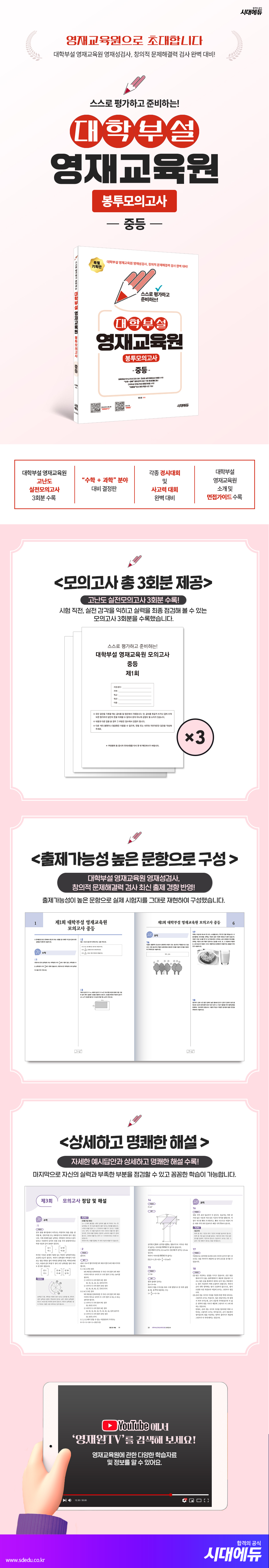 대학부설 영재교육원 모의고사 문제·제1회 모의고사 ·제2회 모의고사 ·제3회 모의고사대학부설 영재교육원 모의고사 가이드 및 정답 및 해설·영재교육원 소개 및 면접가이드·제1회 모의고사 정답 및 해설·제2회 모의고사 정답 및 해설·제3회 모의고사 정답 및 해설