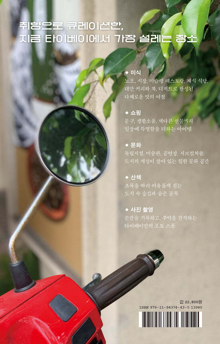 이 책에는 오랫동안 좋아한 타이베이에서 살며, 여행하며 발견한 다양한 취향을 담았다. 전통적인 매력이 깃든 동네부터 새롭게 떠오르는 공간까지, 여행자가 꼭 경험해봤으면 하는 타이베이 곳곳을 큐레이션했다. 이 책이 그 여정을 함께하는 작은 길잡이가 되기를, 그리고 여러분만의 ‘지극히 개인적인’ 타이베이를 발견하기는 계기가 되기를 바란다.