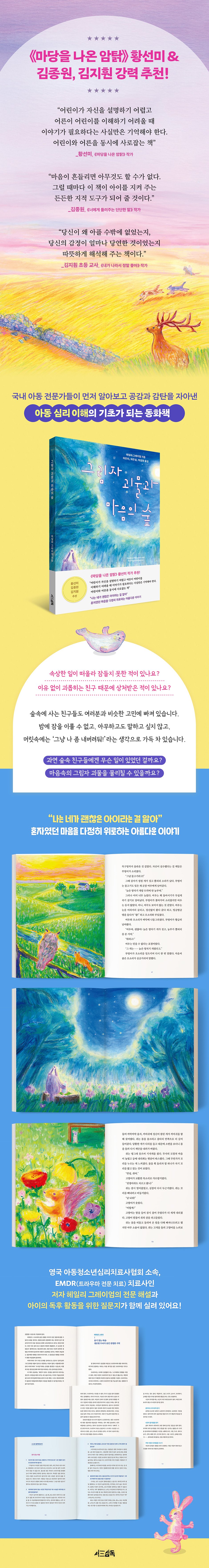 이 책은 당신이 왜 아플 수밖에 없었는지, 당신의 감정이 얼마나 당연한 것이었는지 따뜻하게 해석해 서로를 수용하고 하나의 공동체로 연결되게 만든다. 또한 친절하고 섬세한 해결책을 통해 마음속 깊이 박힌 상처로 헤매고 있는 어린이들이 건강하게 자기를 인식하고 삶의 올바른 방향을 향해 당당히 나아갈 힘을 얻게 될 것이다. - 김지훤 (초등 교사, 《내가 나라서 정말 좋아》 작가)