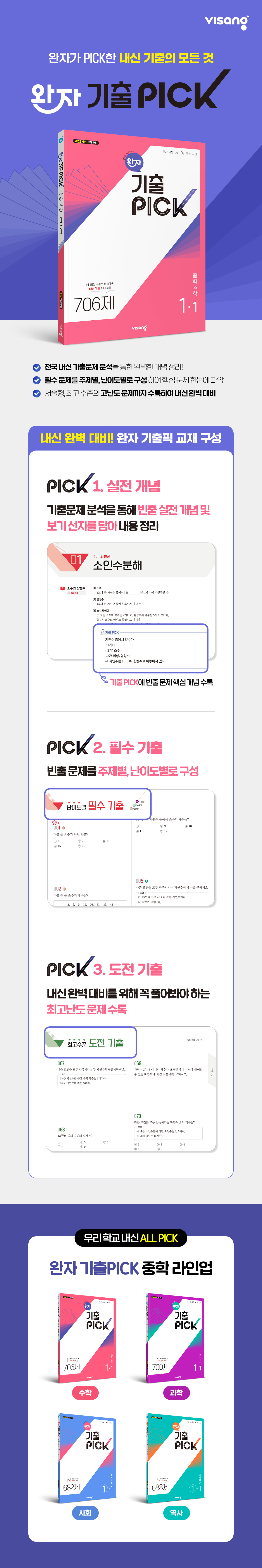 01 유리수와 순환소수 Ⅱ. 식의 계산 02 단항식의 계산 03 다항식의 계산 Ⅲ. 일차부등식 04 일차부등식 05 일차부등식의 활용 Ⅳ. 연립일차방정식 06 연립일차방정식 07 연립일차방정식의 활용 Ⅴ. 일차함수 08 일차함수와 그 그래프 09 일차함수의 그래프의 성질과 활용 10 일차함수와 일차방정식의 관계 |