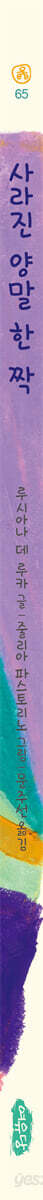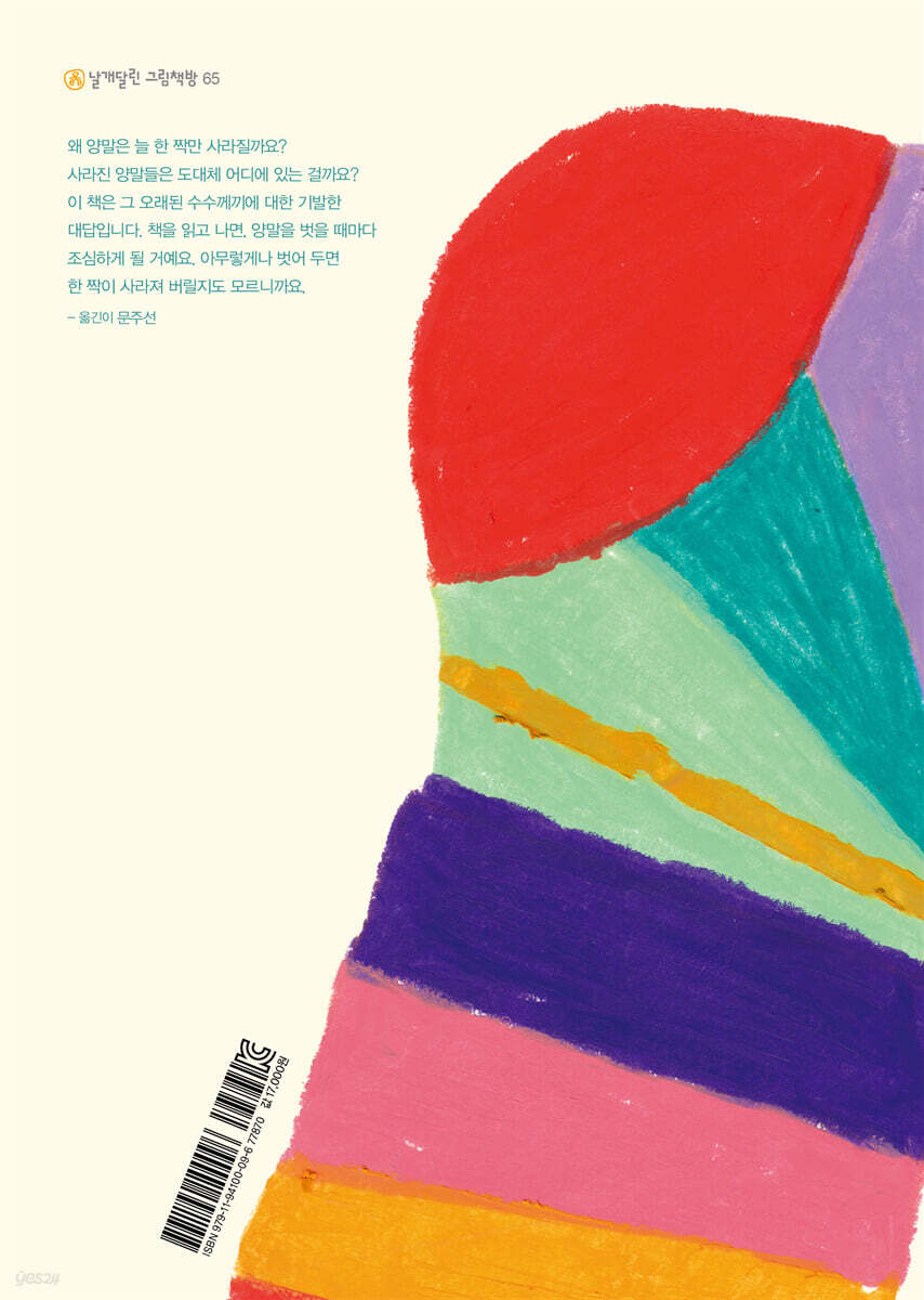 환대와 돌봄, 연대와 사랑으로 가득한 다양성이 존중되는 가족, 공동체로의 초대!! 글을 쓴 아르헨티나 작가 루시아나 데 루카는 놀랍게도 짝 잃은 양말 한 짝들이 모여 사는 곳을 상상했다. 바로 ‘사라진 양말 한 짝들의 섬’이다. 이 섬에는 긴 양말, 짧은 양말, 물방울 양말, 구멍 난 양말, 새 양말 등 온갖 짝 잃은 양말 한 짝들이 살고 있고, 이들은 홀로 살기도 다른 짝들과 가족을 이루기도 같은 짝끼리 결혼해서 살기도 한다. 그리고 요리사, 미용사, 의사, 선생님, 우체부 등 각자의 일을 하며 서로를 아끼고 다 함께 마을을 가꾼다. 알록이와 함께 세탁기 안에서 뱅글뱅글 돌다 잠이 들었다가 깨어 보니 깜깜한 터널을 혼자 떠내려가고 있던 달록이가 긴 여행 끝에 지쳐 도착한 곳이 바로 이 섬이다. 이곳에서 달록이는 양말들의 환대와 돌봄을 받고 완전히 새로운 경험을 한다. 생김새도 하는 일도 사는 모습도 다 다르지만, 다양한 가족 구성과 삶의 방식을 존중하고 연대하며 살아가는 이 섬이 달록이는 참 좋다. 하지만 늘 알록이를 그리워하는데, 달록이와 알록이가 다시 만날 수 있을까 상상하며 책을 보면 책 읽기가 더욱 즐거워진다. 2022년 세종도서 교양부문 선정도서 『천천히 해, 미켈레』 2025년 문학나눔 선정도서 『내가 너보다 커』를 잇는 여유당에서 펴낸 줄리아 파스토리노의 세 번째 그림책!! 2016년과 2022년 볼로냐 올해의 일러스트레이터, 2017년 나미 콩쿠르 입상, 2019 ILLUSTRI 페스티벌 떠오르는 일러스트레이터, 2020년 로다리 상 등을 받으며 세계적인 작가로 떠오른 줄리아 파스토리노의 그림은 어린이의 영혼을 닮은 듯 자유롭고 명랑하고 따뜻하다. 여유당은 줄리아 파스토리노가 그린 그림책을 『사라진 양말 한 짝』 포함 3권을 번역 출판했는데, 처음 소개한 『천천히 해, 미켈레』가 2022년 세종도서 교양부문에 선정된 데 이어 두 번째로 소개한 『내가 너보다 커』가 2025년 문학나눔에 선정되는 영광을 얻었다. 어린이의 세계를 깊이 이해하고 존중하며 응원하는 책에 주는 격려가 아닐까 한다. 『사라진 양말 한 짝』 역시 어린이와 어른, 가족이 함께 읽고 경험을 떠올리며 이야기꽃을 피우기에 좋은 책이다. 양말 한 짝의 여행을 따라가며, 짝 잃은 마음을 상상해 보고 환대와 연대, 사랑의 공동체를 만나 보자. ▶ 옮긴이 문주선의 말 왜 양말은 늘 한 짝만 사라질까요? 사라진 양말들은 도대체 어디에 있는 걸까요? 이 책은 그 오래된 수수께끼에 대한 기발한 대답입니다. 이 책을 다 읽고 나면, 양말을 벗을 때마다 조심하게 될 거예요. 아무렇게나 벗어 두면 한 짝이 사라져 버릴지도 모르니까요. |