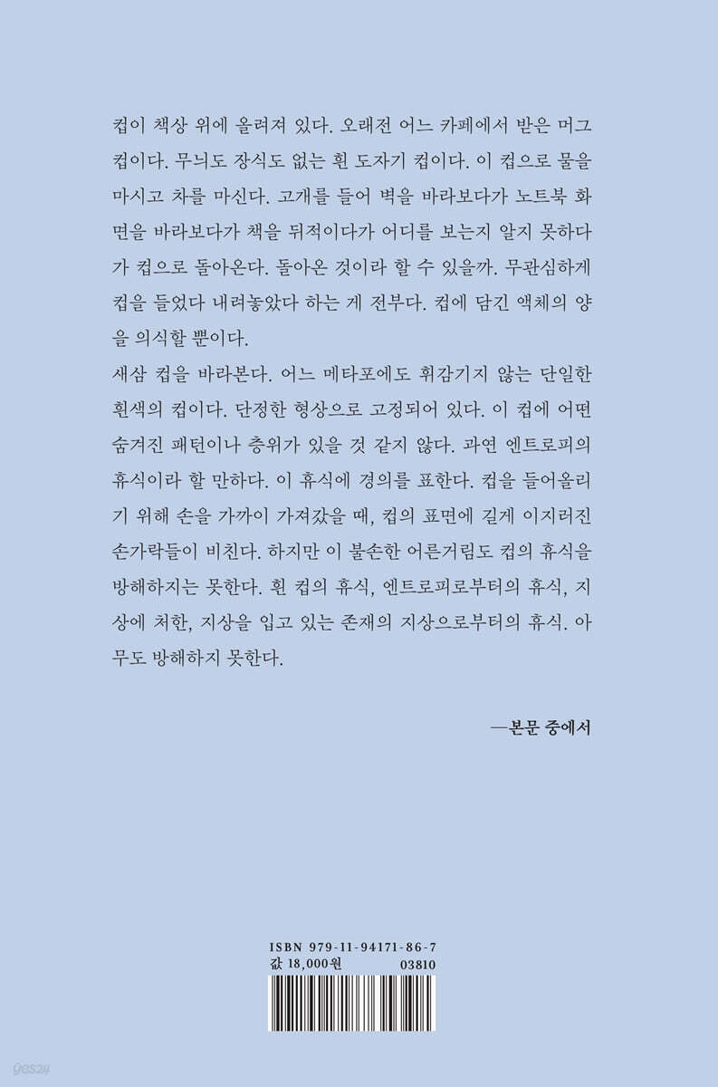 --- 「2025년 1월 일기, 6」 중에서 발화되지 않은 것들, 언어에 접촉되지 않은 무한 세계의 우둔함 속에 몸을 맡기고 앉아 있다. 나는 그 우둔함 속에서 우둔해지고, 거친 힘 속에서 약화되며, 무한의 흐름 속에 상실된다. 이는 매우 간명한 과정이다. 무한은 명령이고 속삭임이다. 하지만 그것이 무엇인지 알지 못한다. 알지 못한 채 편안하다. 언어의 옆길에 있는 물을 마신다. 언어가 알지 못하는 물을 마신다. 꾸밀 수 없는 물이다. 나는 그냥 물을 바라본다. 발화하지 않는 것을 발화되지 않게 한다. --- 「2025년 3월 일기, 8」 중에서 녹이 스는 것에 사로잡힌다. 녹이 슬고 멈추어진 세계에서 어떤 말 못할 불가피함을 목도한다. 이제는 돌이킬 수 없는 방향으로 접어든 것이다. 녹의 색은 형언하기 어렵다. 청록이나 청회색 비슷한, 그러면서 포괄적으로 검은색이다. 시간이 색으로 나타나는 것에 대해 생각해본다. 시간이 쓰러지는 것이다. 지금까지의 초월과 우월을 내려놓고 시간이 색으로 흐느끼는 중이다. 이런 색을 어디에선가 또 본 느낌이다. 어두워질 때의 짙푸른 색이 그렇다. 이맘때, 가까이 도로로 엄습해오는 어둠뿐 아니라 멀리 산의 어두워지는 형체가 모두 청흑색을 띤다. 녹이 슬 때, 그리고 어두워질 때, 시간은 엇갈린 참회를 하는 것일까. 너무 늦었다고, 너무 빠르다고. --- 「2025년 6월 일기, 5」 중에서 |