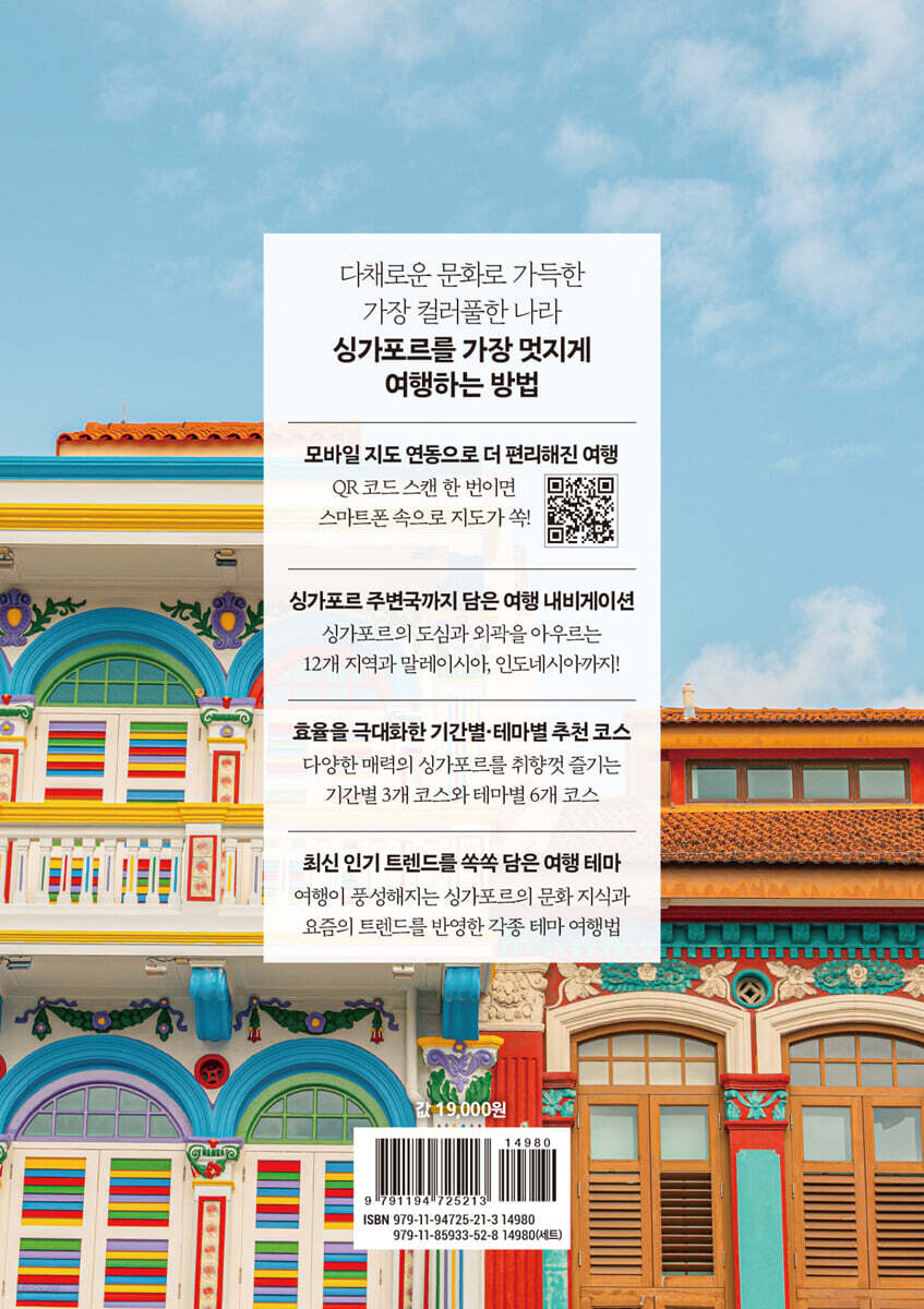 탄탄하게 업그레이드된 실시간 최신 여행 정보 작디작은 면적의 싱가포르는 여행자 관점에서 얼핏 보면 크게 달라진 것이 있을까 싶지만, 그 속에 무한 즐길 거리로 가득한 만큼 끊임없이 변화하고 있다. 시시각각 바뀌는 트렌드와 그에 따라 살아남는 곳과 사라지는 곳이 빈번하게 교차하고, 정기적인 리노베이션으로 같은 장소도 새롭게 변모한다. 이러한 크고 작은 변화를 현지에서 직접 피부로 경험하는 저자들이기에 최신 트렌드를 실시간으로 파악하고, 꾸준히 여행자들과 직접 소통하며 그들의 궁금해 하는 것을 이 한 권에 모두 녹여냈다. 신규 명소는 물론이고, 새롭게 오픈한 장소를 비롯해 요즘 인기 있는 힙한 맛집과 숨은 상점까지 매의 눈으로 찾아낸 숨은 보석 같은 장소들이 추가되어 볼륨이 확 늘었다. 여기에 정보의 밀도 또한 높아졌다. 전문가의 디테일을 살린 실용성 100% 이상의 꿀팁과 생활, 문화 이야기 등 보다 높아진 퀄리티의 정보로 가득하다. 이렇게 다양한 여행이 가능하다고? 없는 게 없는 테마 여행과 도움 되는 문화 이야기 일명 ‘아시아의 멜팅 폿’이라 불릴 정도로 싱가포르에는 아시아의 다양한 인종과 문화, 종교가 공존한다. 게다가 첨단 도시의 기능을 하면서도 싱그러운 그린 시티로 아름다운 자연환경까지 조성되어 있어 도시와 자연 어느 것 하나 놓치지 않는다. 안전한 도시이자 여성과 아이, 노약자에게 친화적인 문화를 갖고 있기에 누구와 여행을 함께해도 만족스럽게 즐길 수 있다. 이러한 매력에 더해 ‘싱가포르 국립 박물관’ 도슨트 출신 저자들의 인문학적 지식을 녹여낸 역사·문화·생활 이야기는 싱가포르에 대한 이해를 높이고, 수많은 각양각색의 테마 여행을 제안한다. 휘황찬란한 싱가포르의 야경 명소, 그린 시티를 나타내는 공원, 아드레날린이 솟구치는 테마파크와 액티비티 같은 명소 외에도 음식, 쇼핑에 걸쳐 수십 가지의 테마를 즐길 수 있는 장소들을 보여준다. 그저 읽기만 해도 지식 수양과 실용적인 정보 습득이 자연스레 따라온다. 싱가포르 너머 이웃 국가까지! 싱가포르 12개 지역과 말레이시아, 인도네시아까지 섭렵 각각의 색깔이 뚜렷한 12개의 지역을 심도 있게 소개한다. 역사의 시작이자 여행의 출발점인 올드 시티, 싱가포르를 대표하는 마리나 베이, 휴양과 액티비티의 센토사섬, 현지인의 여유가 느껴지는 카통 & 주치앗 등 싱가포르의 구석구석까지 알 수 있다. 각 지역에는 해당 지역을 효율적으로 돌아볼 수 있는 추천 코스와 함께 핵심 명소와 맛집, 쇼핑 플레이스 등을 담았다. 셀 수 없이 많은 여행자와 만나온 저자들이기에 진심을 담아 꼭 추천하는 장소들로만 엄선했다. 싱가포르에만 그치는 것이 아니다. 다리 하나만 건너면, 페리 하나만 타면 만날 수 있는 말레이시아 조호바루와 인도네시아 빈탄도 놓치지 말자. 약간의 이동만 감내한다면 훨씬 저렴한 가격으로 쇼핑과 테마파크, 그리고 휴양을 즐길 수 있는 이색 여행이 가능하다. 현지 검증을 마친 최적의 동선! 뭐가 필요할지 몰라 다 준비한 기간?테마?지역별 추천 코스 면적이 작은 만큼 중심 지역이 옹기종기 모여 있고, 이동 시간도 길지 않은 터라 여러 지역을 묶어서 여행할 방법이 많은 싱가포르다. 그래서 오히려 코스를 정하기가 어려운 고충을 해결해주기 위해 저자들이 검증한 돈과 시간을 아껴주는 최적의 코스로 안내한다. 짧게는 스탑오버부터 4박 5일까지의 체류 일정에 맞춰 핵심적인 볼거리와 먹거리, 쇼핑을 모두 즐길 수 있는 기간별 전체 코스를 제안하고, 개인의 취향이나 동행자를 고려한 하루 코스를 알려준다. 일정에 맞춰 따라가도 되고, 하루 코스를 조합해 매일 색다른 콘셉트의 여행을 할 수도 있다. 또한 각 지역의 추천 코스에는 방문 장소별로 깨알 같은 팁을 주고, 연계 여행하기 좋은 지역까지 알려준다. 무계획 P 여행자도, 시간 계산하는 J 여행자도 고민 없이 그저 따라만 가면 되는 궁극의 루트다. 욕망 터지는 음식과 쇼핑의 향연! 입맛 대폭발하는 맛집과 지갑이 털리는 고급 쇼핑 정보 세계 속의 미식을 맛볼 수 있는 점도 싱가포르의 매력 중 하나다. 세상에서 제일 저렴한 미쉐린 레스토랑부터 3스타를 가진 파인 다이닝까지 맛의 스펙트럼이 넓고, 대표 음식도 다양한 문화만큼이나 가지각색이다. 이 음식들을 정갈하고 맛있게 음미하기 위한 싱가포르만의 식문화 이야기부터 식당 예약 앱, 호커센터 이용 방법, 나에게 맞는 커피 메뉴 찾는 법 등 실용적인 정보까지 다루어 먹고 마시는 시간을 더욱 가치 있게 만든다. 그리고 싱가포르에는 대형 쇼핑몰이 즐비한 만큼 사야 할 것도 참 많다. 식재료, 간식거리, 차, 식기, 패션 브랜드 등 종류도 너무 많기에 가장 인기 있는 베스트 품목들로만 구성했다. 여기에 길 잃기 십상인 대형 쇼핑몰도 층별 안내와 함께 가보면 좋은 주요 핵심 매장들을 딱딱 짚어줘 원하는 브랜드를 찾아가기만 하면 된다. 쇼핑몰 외에도 기념품점, 편집 숍, 마트, 재래시장 등 대표적인 쇼핑 플레이스를 소개해 보여준다. 여행자만의 특권인 면세는 면세 기준을 비롯해 환급 과정, 공항 환급 카운터 위치 등을 알려줄 정도
