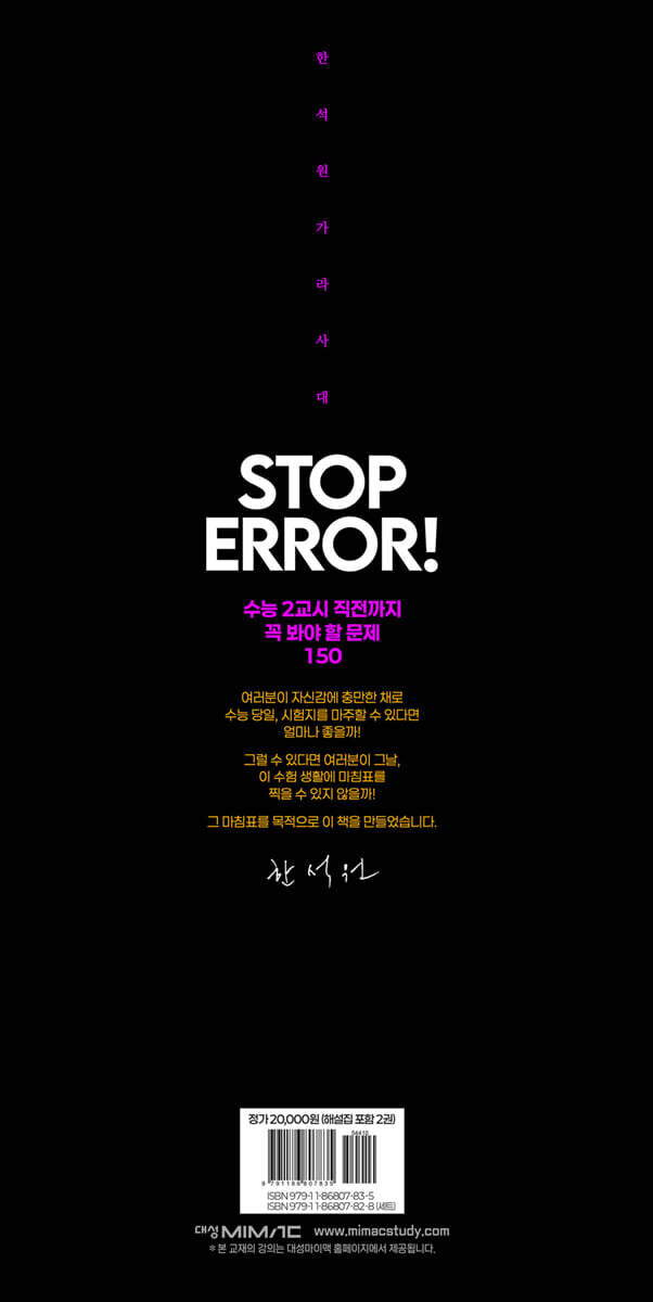 한석원, 그가 글씨를 쓸 때 손을 자세히 들여다보면 손가락 하나가 제대로 움직이지 않는 것을 알 수 있다. 이것은 고달픈 수험 시절이 남겨준 훈장이라고 할 수 있다. 그에겐 손가락이 마비되는 줄도 모르고 공부를 했던 시절이 있었다. 스스로 인간의 한계를 느낄 만큼 힘든 수험 시절을 겪었기에 그의 강의는 더더욱 호소력이 강하다. 그래서 “정면돌파만이 승리를 위한 길이다, 도망가려면 아예 시작도 하지 마라”는 호통에도 학생들은 열광한다. 강의를 시작한지 30년이 훌쩍 넘었지만 그는 세대를 뛰어넘어 진정한 스승으로 받아들여지고 있다.