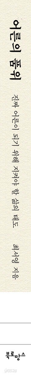 --- p.17 「품위 없는 어른이 되고 싶지는 않아」 중에서 지금의 나를 완성된 사람이라고는 생각하지 않는다. 여전히 실수를 하고, 자기 전 누워서 후회하는 장면을 되풀이하기도 한다. 다만 예전보다 나 자신을 쉽게 미워하지 않게 되었다는 점에서 나는 나아가고 있다고 믿는다. 완벽하지 않아도 괜찮고 금이 간 채로도 우리는 충분히 아름다울 수 있다. --- p.31 「과거의 나를 안아주기」 중에서 지쳐서 나가떨어지기 전에 조금 일찍 나를 쉬게 하는 일. 쉬는 것도 감각이다. 그 감각을 무시한 채 앞으로만 나아가면 나만 흐려진다. 누구에게 강요받지 않고 내 선택으로 결정해서 멈췄다가 다시 일상으로 돌아오는 일. 내가 생각하는 휴식의 방식이다. --- p.92 「쉼의 감각」 중에서 처음에는 단순히 좋은 사람이라고 생각하지만 시간이 지나면 내가 본 멋진 모습들은 그들이 오래 단련한 실력이자 차곡차곡 쌓아온 품격이라는 것을 깨닫게 된다. 좋은 사람을 만나다 보면 나도 그들이 가진 좋은 생각과 습관, 건강한 욕심을 배워 결국 그들처럼 좋은 사람이 될 수 있을 것만 같다. --- p.107 「닮고 싶은 사람」 중에서 좋아하는 것도, 잘하는 것도 없다고 말하는 사람들을 자주 만난다. 하지만 이미 자신이 좋아하고 잘하는 일이 삶 속에 녹아들어 있는 경우가 많다. 다만 너무 익숙해서, 혹은 별것 아니라고 여겨서 제대로 보지 못했을 뿐이다. 우리가 간과했던 질문 속에 나도 몰랐던 나의 감각, 내가 스스로 깨닫지 못한 재능과 흥미가 있다. 그걸 알아채는 순간 어렵게만 느껴졌던 ‘좋아하면서 잘하는 일’의 실마리를 찾을 수도 있다. --- p.174 「숨겨진 재능을 찾는 질문」 중에서 세상은 그래서 아는 만큼만 보인다. 내 좁은 세계의 상식으로 세상을 재단한 것이다. 이 깨달음이 내가 함께 일하는 사람들을 더욱 깊이 존중하게 만들어 준다. 사회인이 된다는 건 단순히 업무를 빠르게 익혀서 잘하게 되는 게 아니라 복잡다단한 인간이라는 존재를 배우는 과정이 아닐까. 조금 더 다정하게, 조금 더 이해하려는 태도로 서로를 대한다면 우리가 매일 감당해야 하는 먹고사는 일이 지금보단 덜 각박해질 것이라 믿는다. --- p.235 「서로에게 다정할 것」 중에서 |