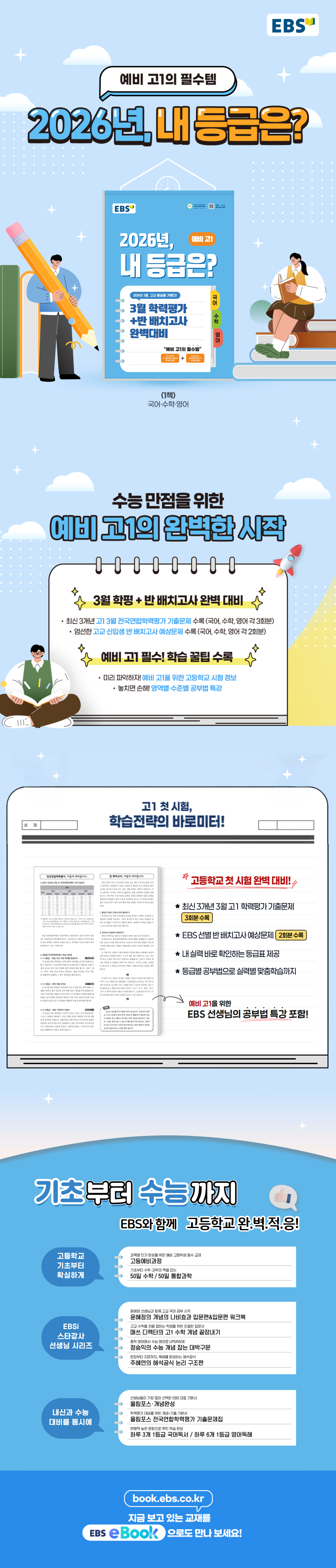 전국연합학력평가, 이렇게 대비합니다. 반 배치고사, 이렇게 대비합니다. 제1회 2025학년도 3월 고1 전국연합학력평가 문제지 제2회 2024학년도 3월 고1 전국연합학력평가 문제지 제3회 2023학년도 3월 고1 전국연합학력평가 문제지 제4회 고등학교 신입생 반 배치고사 문제지 제5회 고등학교 신입생 반 배치고사 문제지 수학 영역 전국연합학력평가, 이렇게 대비합니다. 반 배치고사, 이렇게 대비합니다. 제1회 2025학년도 3월 고1 전국연합학력평가 문제지 제2회 2024학년도 3월 고1 전국연합학력평가 문제지 제3회 2023학년도 3월 고1 전국연합학력평가 문제지 제4회 고등학교 신입생 반 배치고사 문제지 제5회 고등학교 신입생 반 배치고사 문제지 영어 영역 전국연합학력평가, 이렇게 대비합니다. 반 배치고사, 이렇게 대비합니다. 제1회 2025학년도 3월 고1 전국연합학력평가 문제지 제2회 2024학년도 3월 고1 전국연합학력평가 문제지 제3회 2023학년도 3월 고1 전국연합학력평가 문제지 제4회 고등학교 신입생 반 배치고사 문제지 제5회 고등학교 신입생 반 배치고사 문제지 정답과 해설 |