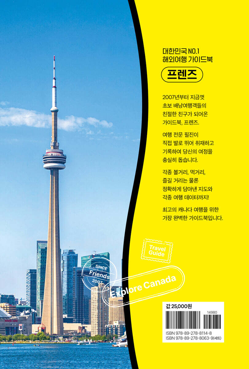 우리나라 면적의 100배에 달하는, 세계에서 두 번째로 큰 나라로 꼽히는 캐나다는 동서남북으로 각양각색의 매력을 뽐내는 명소들이 가득하다. 번화한 상업 도시부터 오래된 원주민의 풍습이 그대로 남아 있는 전통적인 마을까지 ‘종합선물세트’와도 같은 여행지다. 뿐만 아니라 세계 3대 폭포 나이아가라가 있고 대자연의 진수인 로키산맥을 품고 있어 누구나 꿈꿔온 해외여행의 로망을 실현하기에도 더없이 좋은 곳이다. 〈프렌즈 캐나다 2026년 최신판〉과 함께 여행의 매 순간 다채로운 풍경을 마주할 수 있는 무한 매력의 여행지 캐나다로 떠나보자.