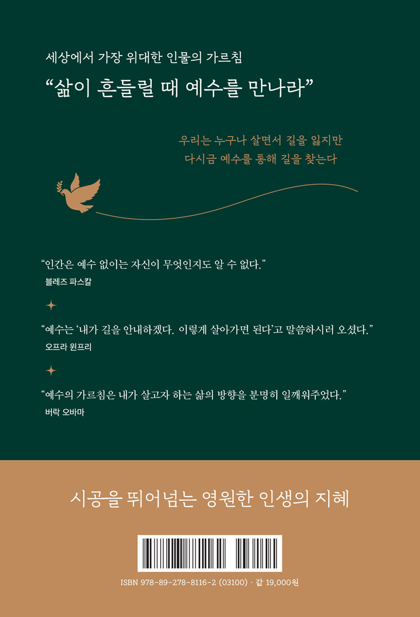 2천 년의 시간을 넘어, 그의 언어를 현대어로 다시 읽는다 예수가 지금 살아 돌아온다면, 바로 이 책의 언어로 우리와 대화할 것이다 예수는 2천 년 전 팔레스타인 땅을 걸었던 한 인간이자, 동시대를 살아간 이들에게 직접 말을 건넨 존재였다. 그러나 시간이 흐르며 그의 말은 종교적 해석과 전통 속에서 여러 겹의 의미로 덧입혀졌다. 국내 대표적 종교학자인 김학철 교수는 그 겹겹의 해석을 걷어내고, 문자 그대로의 번역을 넘어 오늘의 삶과 맞닿은 초역으로 다시 풀어낸다. 초역은 단순히 단어를 옮기는 작업이 아니라, 역사와 문화, 사회적 맥락을 고려해 지금 우리의 삶에 울림을 주는 언어로 되살리는 일이다. 예수의 언어가 이토록 위대한 이유는 모든 이를 일깨우는 참된 지혜이기 때문이다. 그의 한마디 한마디는 특정 종교에 속한 사람들만을 위한 말이 아니라, 인간이라면 누구나 공감하고 성찰할 수 있는 삶의 원리로 이어진다. 그래서 예수의 언어는 시대를 넘어 오늘의 자리에서도 여전히 살아 있고, 우리 각자가 마주한 현실 속에서도 깊은 울림을 던진다. 따라서 이 책은 교리를 따르기 위한 성경 해설서가 아니다. 신앙의 유무와 관계없이 누구나 읽을 수 있도록, 예수를 절대적 존재라기보다 삶을 성찰하게 하는 멘토이자 길잡이로 바라보며, 그가 전하려 했던 생생한 메시지를 오늘의 자리로 불러온다. 저자는 예수의 한 문장 한 문장을 곱씹어 우리 내면 깊숙한 갈증을 비추는 거울로 삼는다. 우리는 누구나 살면서 길을 잃지만 다시금 예수를 통해 길을 찾는다 본문은 네 복음서에 담긴 예수의 말을 모아 ‘마음 고쳐먹기’, ‘생각 다시 하기’, ‘인생 새로 보기’라는 세 축으로 엮었다. 각 구절은 단순한 교리의 지침이 아니라, 인간으로서 어떻게 살아야 하는가에 대한 구체적이면서도 본질적인 물음이다. “쓸데없는 걱정을 하지 말라”, “작은 정성도 반드시 보상을 받는다”, “사람을 더럽게 하는 것은 마음에 달렸다”와 같은 말들은 종교적 맥락을 넘어 일상에서 바로 실천 가능한 지혜다. 저자는 이 책을 단숨에 읽기보다는 하루에 한 구절씩 곱씹기를 권한다. 짧은 문장 하나가 곧 한 페이지, 한 권의 책이 될 만큼 깊은 통찰을 품고 있기 때문이다. 단어는 짧고 문장은 간결하지만, 그 안에는 삶의 무게와 선택의 순간이 압축되어 있다. 그래서 이 책은 빠르게 훑는 책이 아니라, 시간을 들여 천천히 되새길 때 더 큰 울림을 주는 책이다. 마치 모래알 속에서 세계를 발견하듯, 작은 한 문장이 내 삶 전체를 흔드는 성찰의 단초가 된다. 이 책은 바로 그런 깨달음의 순간을 우리에게 건네준다. |