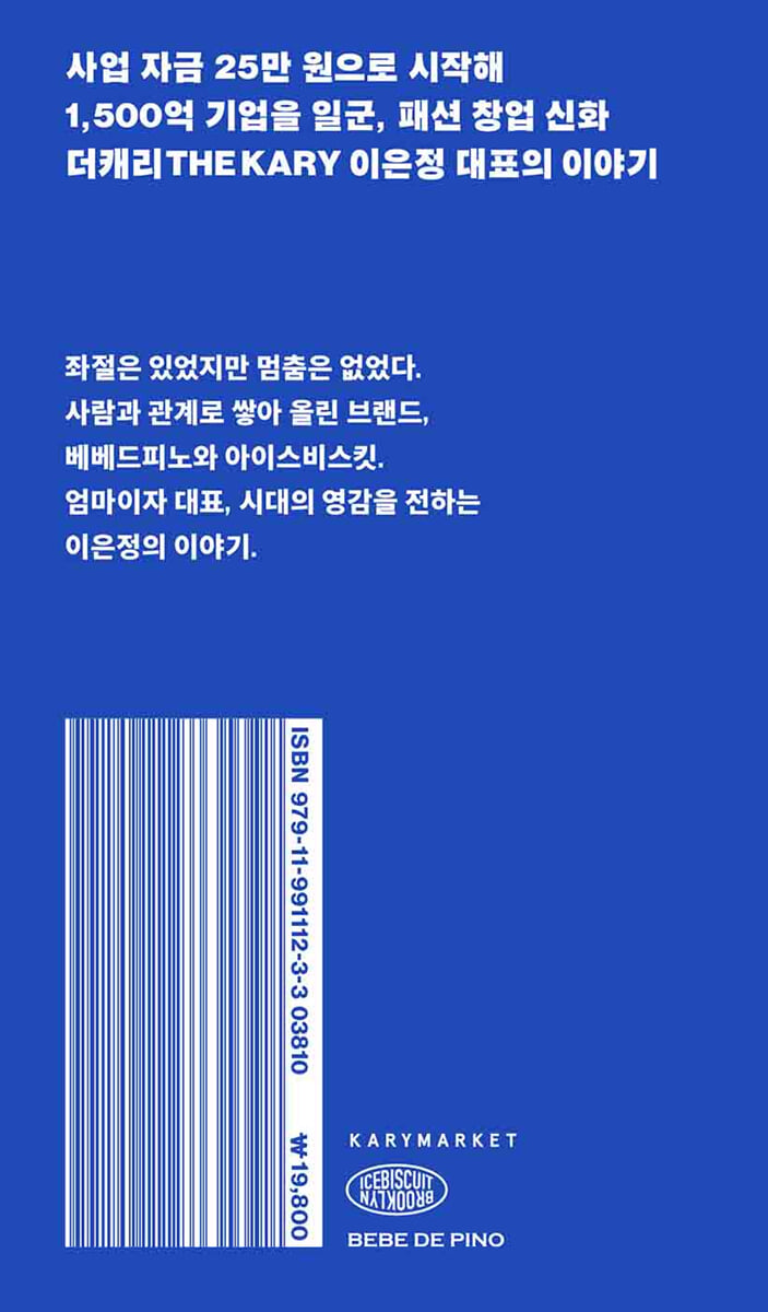 --- p.8 나는 현재 〈더캐리〉라는 회사를 운영하는 대표이지만, 그 전에 나는 두 아이의 엄마이자 이은정이라는 지극히 평범한 한 사람입니다. 너무나 평범했던 내가 어떻게 해서 평범하지 않은 삶을 살아갈 수 있었는지, 나 자신도 가끔은 믿기 어려울 때가 있습니다. --- p.10 브랜드를 만들 때는 자신이 진짜 좋아하고 관심을 갖고 있으며 잘할 수 있는 분야에서 출발하는 게 좋아요. 진정성 있는 시작은 결국 브랜드를 올바른 방향으로 이끌어 줍니다. 너무 오래 걱정만 하지 말고 일단 도전해 보세요. --- p.262 |