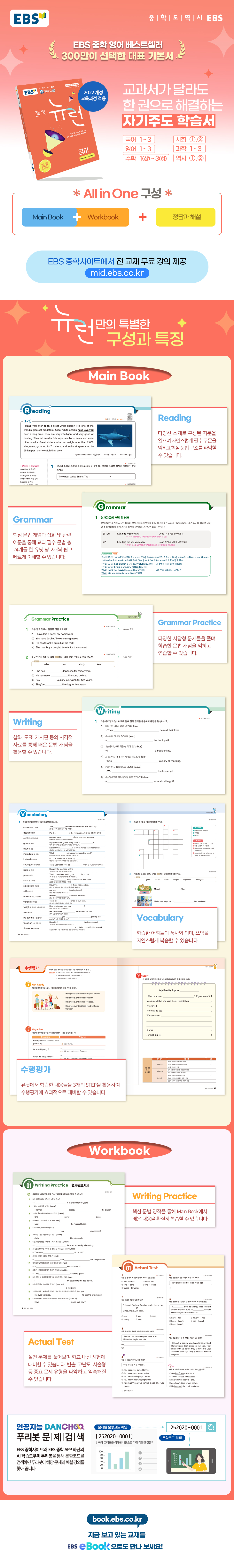 Unit 02 수동태 Unit 03 조동사 수행평가 Unit 04 to부정사(1) Unit 05 to부정사(2) Unit 06 동명사 수행평가 Unit 07 분사 Unit 08 5형식 문장 Unit 09 대명사 수행평가 Unit 10 비교 Unit 11 관계대명사 Unit 12 접속사 수행평가 정답과 해설 |