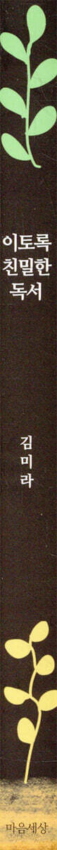 운명처럼 다가온 책에서 위안을 얻다 - 12 내 인생을 바꾸는 힘은 어디에 있을까 - 20 틀린 게 아니라 다른 거야 - 28 평범함이 특별함이 될 수 있을까 - 36 목표 없는 독서도 괜찮아 - 44 오늘의 독서는 내일의 기쁨이 된다 - 51 책을 읽는 사람이 행복할 수밖에 없는 이유 - 58 2장 좋은 책을 만나는 건 아주 특별한 일이다 상처 뒤로 숨지 말고 정면으로 마주하라 - 67 생각을 다스리는 이로운 행위 - 74 글 속에서 내 삶을 발견하고 있는가 - 82 읽을 때마다 비밀의 문이 열린다 - 90 특별한 스승을 만나는 시간 - 97 가장 위대한 도전은 독서하는 행위 - 105 독서를 통해 삶의 흐름을 바꿀 수 있다 - 113 3장 책에 대한 사소한 오해들 책의 가치는 누가 판단하는가 - 121 제대로 읽었다는 착각 - 128 끝까지 다 읽어야만 할까 - 135 오래 머물러도 괜찮아 - 142 책을 많이 읽으면 말을 잘할 수 있을까 - 149 하라는 대로 해도 성공하지 못하는 이유 - 157 책은 정답을 주지 않는다 - 165 4장 책을 제대로 즐기는 친밀한 독서법 7가지 책과 친밀해지고 싶다면 아이처럼 느껴라 - 173 기록하면 더 가까워진다 - 181 가끔은 눈과 귀를 닫고 읽어라 - 189 관점을 바꾸면 수수께끼가 풀린다 - 197 나의 언어로 번역하며 읽어라 - 205 10분, 300분, 3,600분의 마법 - 213 판단은 적게, 수용은 많이 하라 - 221 5장 진정한 독서의 완성은 삶이다 읽으며 감정의 조각들을 모은다 - 230 보이지 않던 길을 걸어가고 싶다면 - 238 책장에 꽂아두었던 책을 다시 펼치며 - 246 쓸모없는 인생은 없다는 확신 - 254 독창적이고 확장된 사고로 나아가는 길 - 261 책을 읽을수록 단단해지는 삶 - 269 진정한 독서의 완성은 삶이다 - 277 |