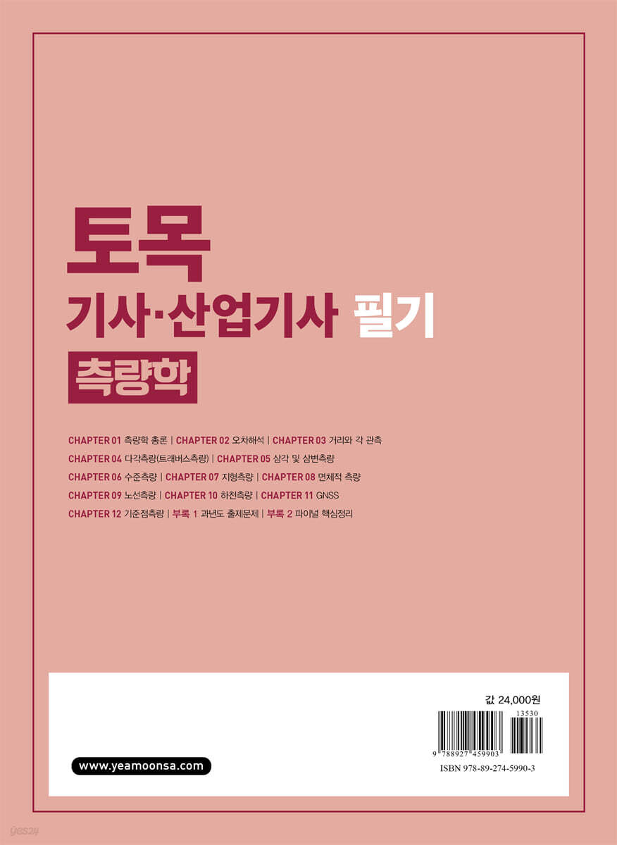 CHAPTER 02 오차해석 CHAPTER 03 거리와 각 관측 CHAPTER 04 다각측량(트래버스측량) CHAPTER 05 삼각 및 삼변측량 CHAPTER 06 수준측량 CHAPTER 07 지형측량 CHAPTER 08 면체적 측량 CHAPTER 09 노선측량 CHAPTER 10 하천측량 CHAPTER 11 GNSS CHAPTER 12 기준점 측량 부록 1 과년도 출제문제 토목기사 2015년 제1회 기출문제 토목기사 2015년 제2회 기출문제 토목기사 2015년 제4회 기출문제 토목기사 2016년 제1회 기출문제 토목기사 2016년 제2회 기출문제 토목기사 2016년 제4회 기출문제 토목기사 2017년 제1회 기출문제 토목기사 2017년 제2회 기출문제 토목기사 2017년 제4회 기출문제 토목기사 2018년 제1회 기출문제 토목기사 2018년 제2회 기출문제 토목기사 2018년 제3회 기출문제 토목기사 2019년 제1회 기출문제 토목기사 2019년 제2회 기출문제 토목기사 2019년 제3회 기출문제 토목기사 2020년 제1 · 2회 기출문제 토목기사 2020년 제3회 기출문제 토목기사 2020년 제4회 기출문제 토목기사 2021년 제1회 기출문제 토목기사 2021년 제2회 기출문제 토목기사 2021년 제3회 기출문제 토목기사 2022년 제1회 기출문제 토목기사 2022년 제2회 기출문제 토목기사 2022년 제3회 CBT 복원문제 토목기사 2023년 제1~3회 CBT 복원문제 토목기사 2024년 제1~3회 CBT 복원문제 토목기사 2025년 제1~3회 CBT 복원문제 토목산업기사 2015년 제1회 기출문제 토목산업기사 2015년 제2회 기출문제 토목산업기사 2015년 제4회 기출문제 토목산업기사 2016년 제1회 기출문제 토목산업기사 2016년 제2회 기출문제 토목산업기사 2016년 제4회 기출문제 토목산업기사 2017년 제1회 기출문제 토목산업기사 2017년 제2회 기출문제 토목산업기사 2017년 제4회 기출문제 토목산업기사 2018년 제1회 기출문제 토목산업기사 2018년 제2회 기출문제 토목산업기사 2018년 제4회 기출문제 토목산업기사 2019년 제1회 기출문제 토목산업기사 2019년 제2회 기출문제 토목산업기사 2019년 제4회 기출문제 토목산업기사 2020년 제1 · 2회 기출문제 토목산업기사 2020년 제3회 기출문제 부록 2 파이널 핵심정리 1. 측량학 총론 2. 오차 해석 3. 거리와 각관측 해석 4. 다각측량 5. 삼각측량 6. 수준측량 7. 지형측량 8. 면체적 측량 9. 노선 측량 10. 하천 측량 11. 위성측위 시스템(GNSS) 및 기준점 |