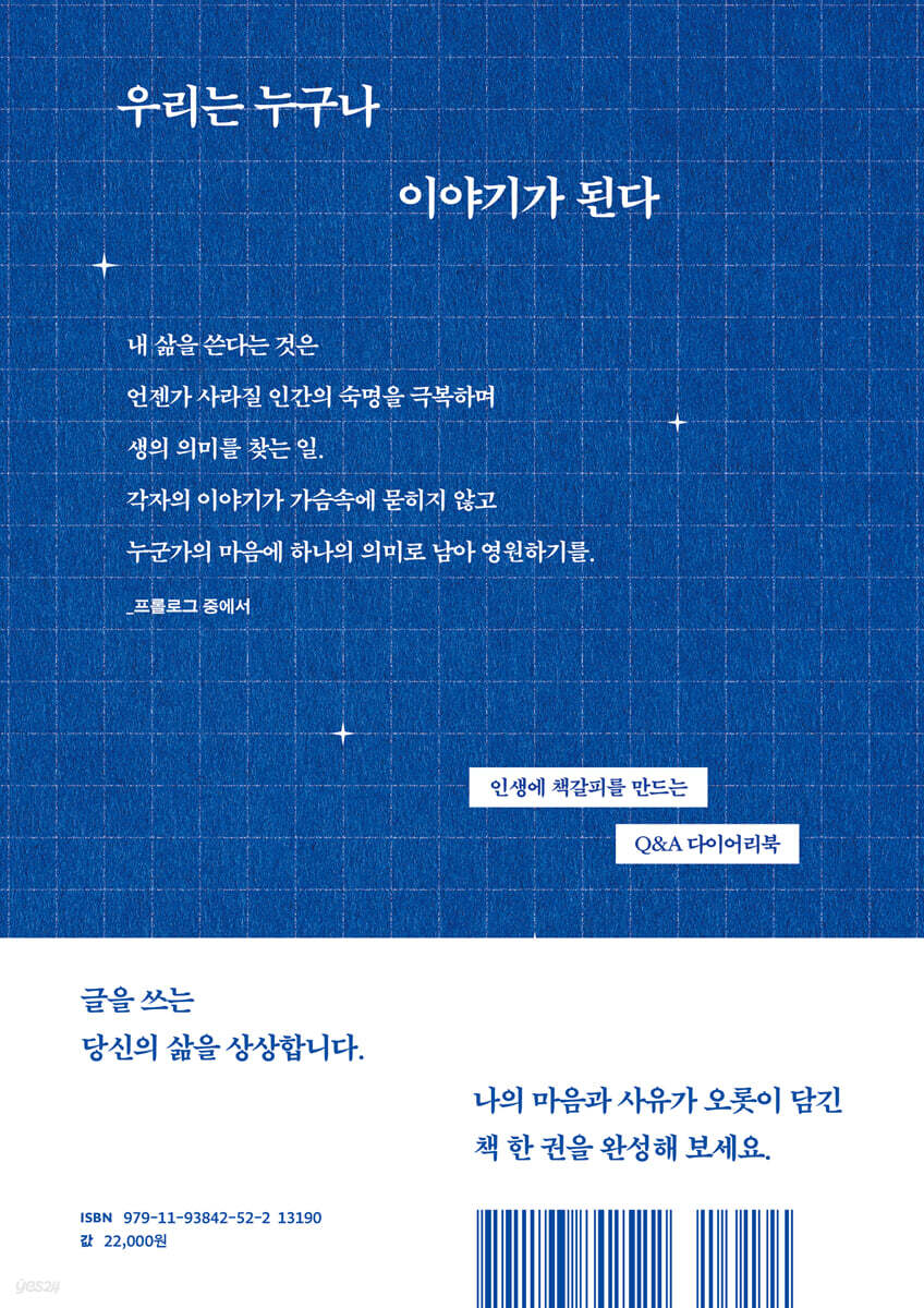 내 삶을 쓴다는 것은 언젠가 사라질 인간의 숙명을 극복하며 생의 의미를 찾는 일. 각자의 이야기가 가슴속에 묻히지 않고 누군가의 마음에 하나의 의미로 남아 영원하기를 저는 소망합니다.