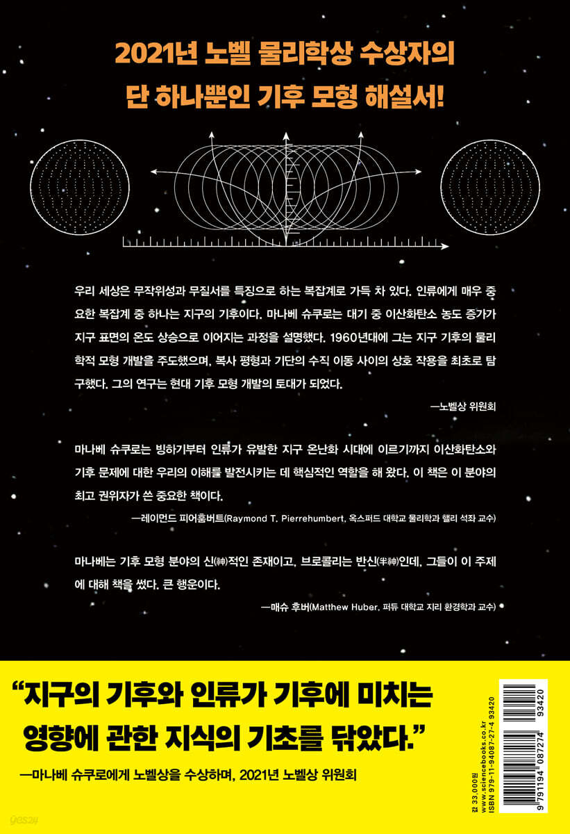 마나베 슈쿠로는 빙하기부터 인류가 유발한 지구 온난화 시대에 이르기까지 이산화탄소와 기후 문제에 대한 우리의 이해를 발전시키는 데 핵심적인 역할을 해 왔다. 이 책은 이 분야의 최고 권위자가 쓴 중요한 책이다. - 레이먼드 피어훔버트(Raymond T. Pierrehumbert) (옥스퍼드 대학교 물리학과 핼리 석좌 교수)