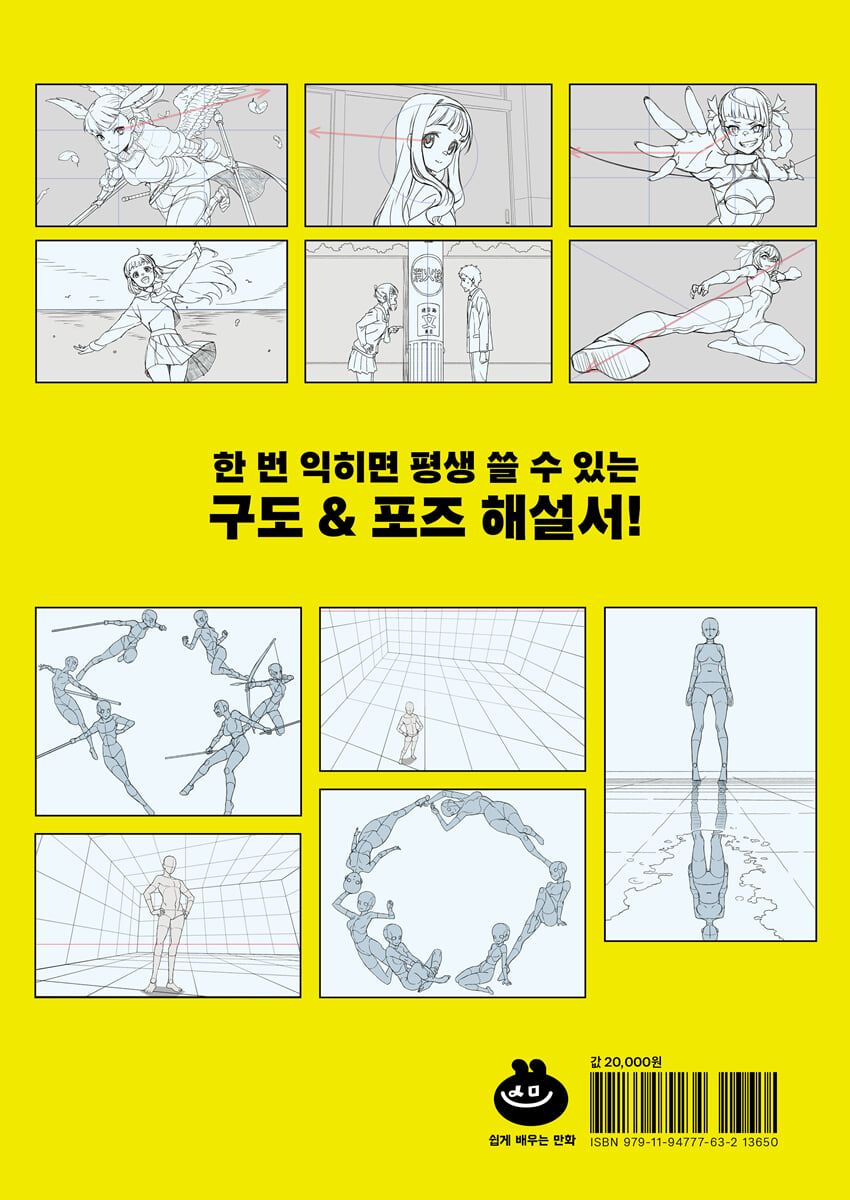 1장 포즈 포즈를 잡는 이유/ 포즈 찾는 법/ 실습! / 포즈를 정하는 방법/ 포즈를 강화한다/ 포즈의 종류 칼럼 : 몸의 일부만 바꿔도 분위기가 바뀐다 2장 구도 캔버스 크기를 선택한다/ 구도를 사용하는 이유 (칼럼 : 정보량으로 시선을 유도하자/ 대비 차이로 주제를 바꿀 수 있다) 목적에 알맞은 구도를 선택한다 (원형 구도/ 황금분할 구도/ 삼분할 구도/ 황금나선 구도/ 칼럼 : 백은비 구도/ X구도/ 방사 구도/ 삼각 구도/ 수평 구도/ 수직 구도/ 마름모 구도/ 지그재그 구도/ 곡선 구도/ 샌드위치 구도/ 액자 구도/ 대칭 구도/ 비대칭 구도/ 교차 원근 구도/ 로우앵글·하이앵글/ 칼럼 : 일러스트의 구성·구도를 구상한다) 3장 구도+포즈 응용 배치를 정한다 / 연출을 더한다/ 여러 명의 구도를 잡는 요령(타워형/ 동일 방향형/ 가로 나열형/ (칼럼 : 주역을 정한다)/ 컷 분할형/ 대비·대립형/ 윤형/ 깊이형/ (칼럼 : 그림 한 장에 여러 시간축을 넣는다) 4장 실습! 동인지의 표지를 만들자(다테나오토 편/ 뷰-포인토 편)/ Bonus Page 표지 요약 |