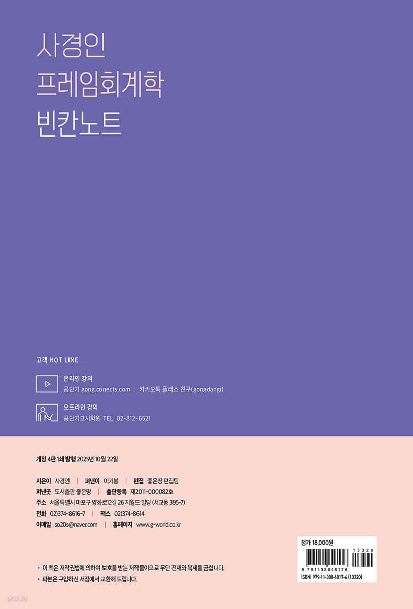 사경인 교수는 학습의 본질이 ‘능동적 참여’에 있음을 강조한다. 단순히 강의나 요약집을 눈으로 읽는 수동적인 공부가 아니라, 스스로 빈칸을 채우며 내용을 인출해 내는 과정을 통해 기억의 정확성과 지속성을 높이는 방식이다. 빈칸노트는 이러한 ‘인출과 반복’이라는 과학적 학습 원리를 반영하여 설계되었다. 학습자가 스스로 빈칸을 채우는 과정에서 뇌의 장기기억 회로가 활성화되며, 단순한 암기가 아닌 ‘이해 기반의 학습’으로 이어진다. 따라서 이 책은 단순한 요약집이 아니라, 학습 효과를 극대화하기 위한 ‘능동형 학습 도구’라 할 수 있다. 이 책은 재무회계, 원가회계, 정부회계의 3편으로 구성되어 있으며, 각 단원은 실제 시험에 출제되는 핵심 개념을 구조적으로 정리했다. 문장의 빈칸을 채워 가며 학습하는 과정에서 수험생은 자연스럽게 개념의 틀과 회계의 논리를 몸에 익히게 될 것이다. 특히 회계이론, 자산·부채·자본의 구조, 원가 흐름, 정부회계의 기초 등 주요 시험 영역을 한 권으로 통합해 놓았기에, 방대한 회계학 범위를 체계적으로 정리하고 반복 학습하기에 적합할 것이다. ‘프레임회계학’ 시리즈는 이미 공무원 수험생들 사이에서 “합격률이 경이로운 교재”로 평가받고 있다. 실제로 사경인 교수의 학습법을 실천한 많은 수험생들이 9급 합격을 넘어 7급, CPA로 나아가는 사례를 보여주고 있다. ‘빈칸노트’는 이들의 합격 비결을 응축한 결과물로, 단순한 요약을 넘어 ‘공부법의 혁신’을 제시할 것이다. 이 책을 통해 수험생은 회계학이라는 방대한 과목을 ‘프레임’ 속에 체계화하고, 능동적 학습을 통해 자신의 것으로 만들 수 있을 것이다. 회계학의 기본기를 다지고, 반복 학습을 통해 실전 감각을 극대화하고자 하는 모든 수험생에게 ‘사경인 프레임회계학 빈칸노트’는 가장 확실한 합격 파트너가 될 것이다. |