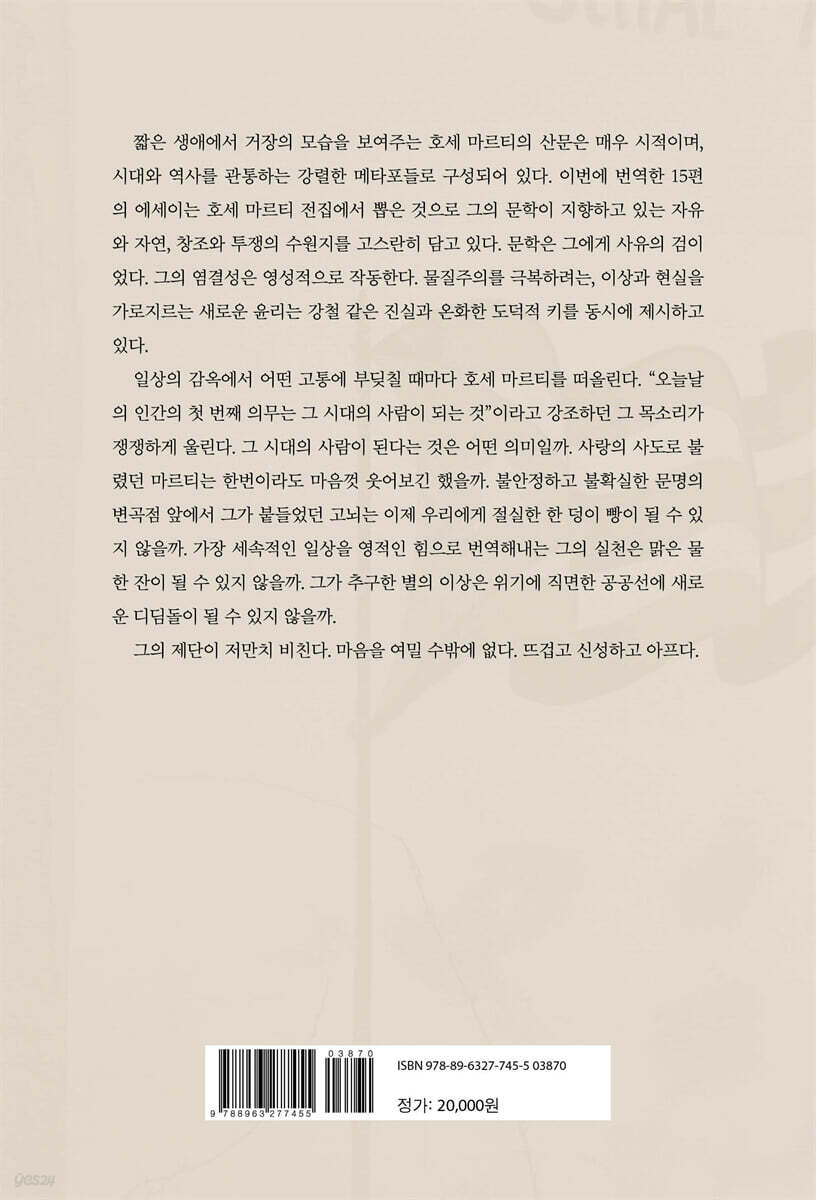 쿠바 혁명에 큰 영향을 끼쳤던 국가적 영웅이자 라틴아메리카 문학의 중요 인물이다. 그는 시인, 수필가, 저널리스트, 혁명가, 번역가, 교수, 정치이론가였다. 그는 1853년 1월 28일, 쿠바 아바나의 가난한 가정에서 태어났다. 1868년 스페인에 맞서는 쿠바의 독립 투쟁인 ‘10년 전쟁’이 일어나자, 독립과 자유를 위한 투쟁에 동참했다. 1869년, 스페인 군대에 입대하는 친구를 비난하는 편지를 썼다는 이유로 체포되어 6년형을 받고, 이듬해 스페인으로 추방됐다. 1874년 사라고사 대학에서 법학과 인문학 학사 학위를 받은 후, 그해 말 쿠바 귀국을 시도했으나 거부당했다. 1875-1878년 프랑스를 거쳐, 주로 멕시코와 과테말라에 머물면서 쿠바 독립을 위한 활동을 계속했다. 1878년 ‘10년 전쟁’이 끝나자 귀국했다. 그러나 반정부 폭동의 주도자로 몰리면서 또다시 스페인으로 추방됐다. 그 후 1881년부터 1895년 쿠바 독립전쟁을 위해 떠날 때까지 주로 뉴욕에서 다양한 장르의 창작을 하고 신문 칼럼을 썼다. 이 시기 주요 시집으로는 『이스마엘리요』(1882), 『자유 시집』(1891)이 있고, 대표적인 에세이로는 『우리들의 아메리카』(1891)가 있다. 1892년 자신이 창당에 관여한 쿠바혁명당 대표로 선출된다. 이때부터 1895년까지 미국 전역을 포함해 아메리카 대륙 곳곳을 누비며 쿠바 독립의 대의를 설파하고 쿠바 독립전쟁을 계획한다. 1895년 1월, 뉴욕을 떠나 도미니카 공화국으로 향한다. 2월 24일, ‘쿠바 혁명의 목적과 원칙’을 밝히는 <몬테크리스티 선언>을 발표하면서 독립전쟁을 선포한다. 4월 11일, 쿠바에 상륙해 현지 혁명군과 합류하면서 본격적인 독립전쟁을 시작한다. 5월 19일, 도스 리오스 전투에서 백마를 타고 스페인군 진영으로 돌격하다가 총에 맞아 전사한다.