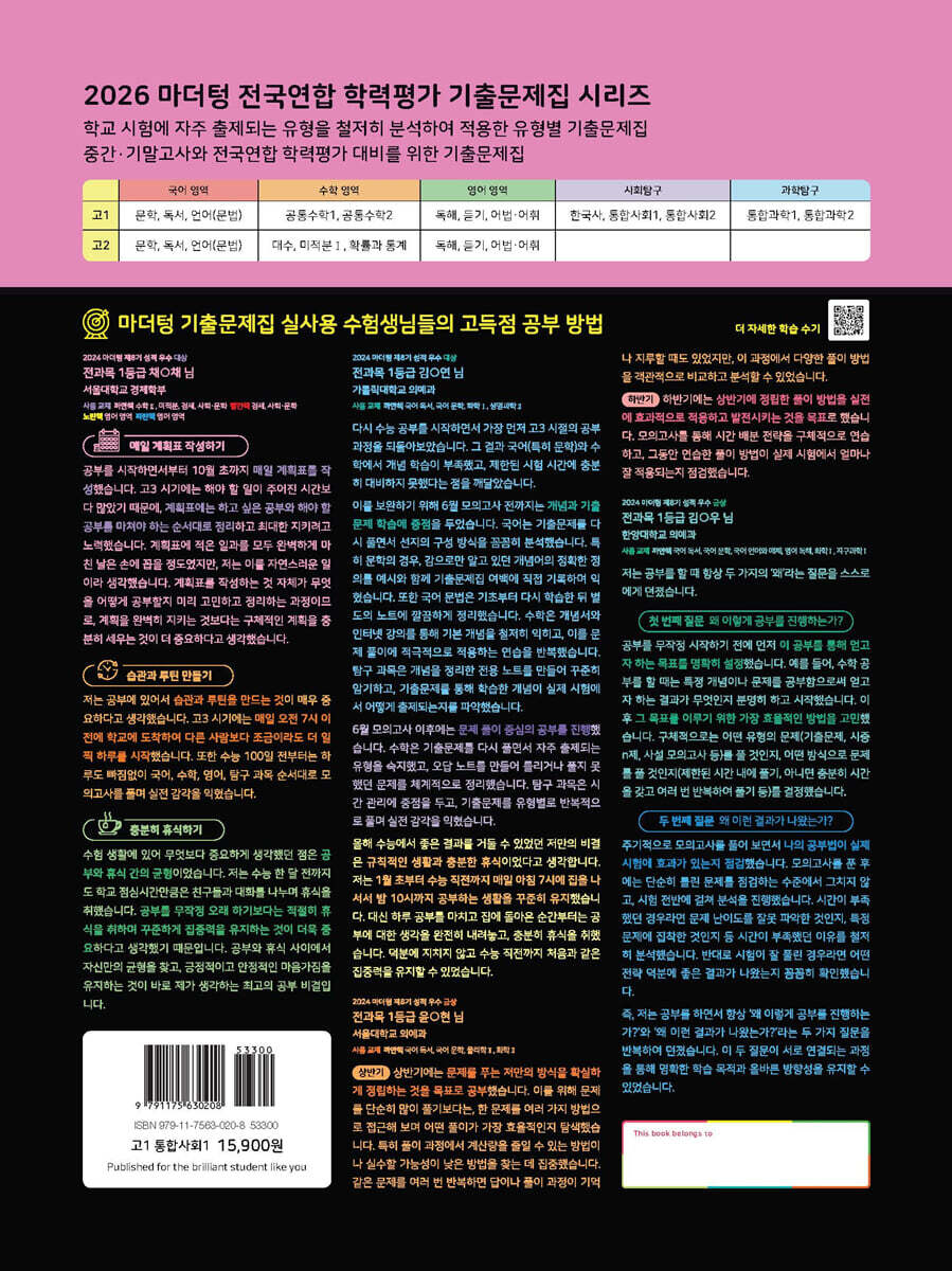 1. 인간, 사회, 환경을 바라보는 다양한 관점 2. 인간, 사회, 환경의 통합적 탐구 3. 행복한 삶을 실현하기 위한 기준 Ⅱ. 인간, 사회, 환경과 행복 1. 행복의 기준과 의미 2. 행복한 삶을 실현하기 위한 조건 Ⅲ. 자연환경과 인간 1. 자연환경과 인간 생활 2. 인간과 자연의 관계 3. 환경 문제 해결을 위한 노력 Ⅳ. 문화와 다양성 1. 다양한 문화권의 특징 2. 문화 변동과 전통문화 3. 문화 상대주의와 보편 윤리 Ⅴ. 생활공간과 사회 1. 산업화와 도시화에 따른 변화 2. 교통·통신 및 과학기술의 발달에 따른 변화 3. 지역의 공간 변화 미니모의고사 1회 미니모의고사 2회 수능 예시문항 1 수능 예시문항 2 |