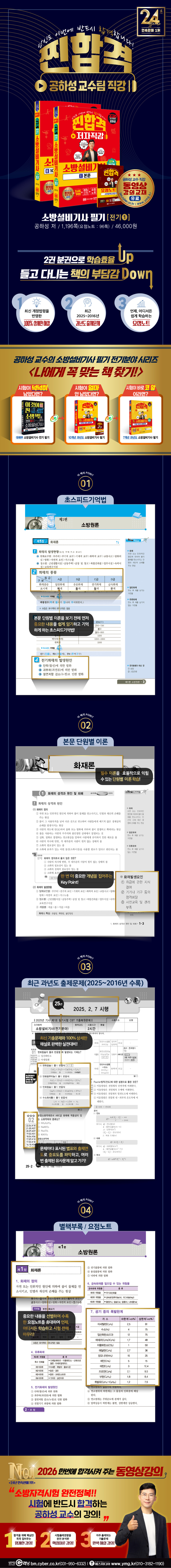 초스피드 기억법으로 중요한 내용들을 쉽게 이해하고 암기할 수 있도록 하였다. · 공하성 교수님만의 체계적인 구성!! 이론을 체계적으로 구성하여 수험생들의 실력을 향상시킬 수 있으며 단원별마다 Key-point를 두어 핵심 사항을 다시 한 번 확인할 수 있도록 하였다. · 수험생들에게 학습 길잡이 역할!! 출제 경향 분석 그래프로 단원별 출제 비중을 한눈에 볼 수 있으며, 전체적인 학습 계획을 세울 수 있도록 하였다. 또한 ‘이 책의 공부 방법’을 소개하여 한 권의 책을 충분히 활용할 수 있도록 방향을 제시해 주었다. · 핵심 이론을 정리한 요점노트!! 요점노트에서 평균 60% 이상이 출제되기 때문에 어느 곳에서나 학습을 할 수 있으며, 짧은 시간 안에 예습, 복습이 가능하다. · 과년도 출제문제(2025~2016년)를 통해 실전 감각 익히기!! 기출문제를 분석해 보면 매년 과년도 문제가 거듭 출제되고 있다. 이에 문제마다 상세하게 해설하여 중요 이론을 학습할 수 있으며 자신의 실력을 평가해 볼 수 있도록 하였다. · 다양한 시험 정보로 완벽 대비하기!! 다양한 시험 정보를 한 권의 책에 수록하여 수험생들이 효과적으로 시간을 활용할 수 있도록 하였다. |