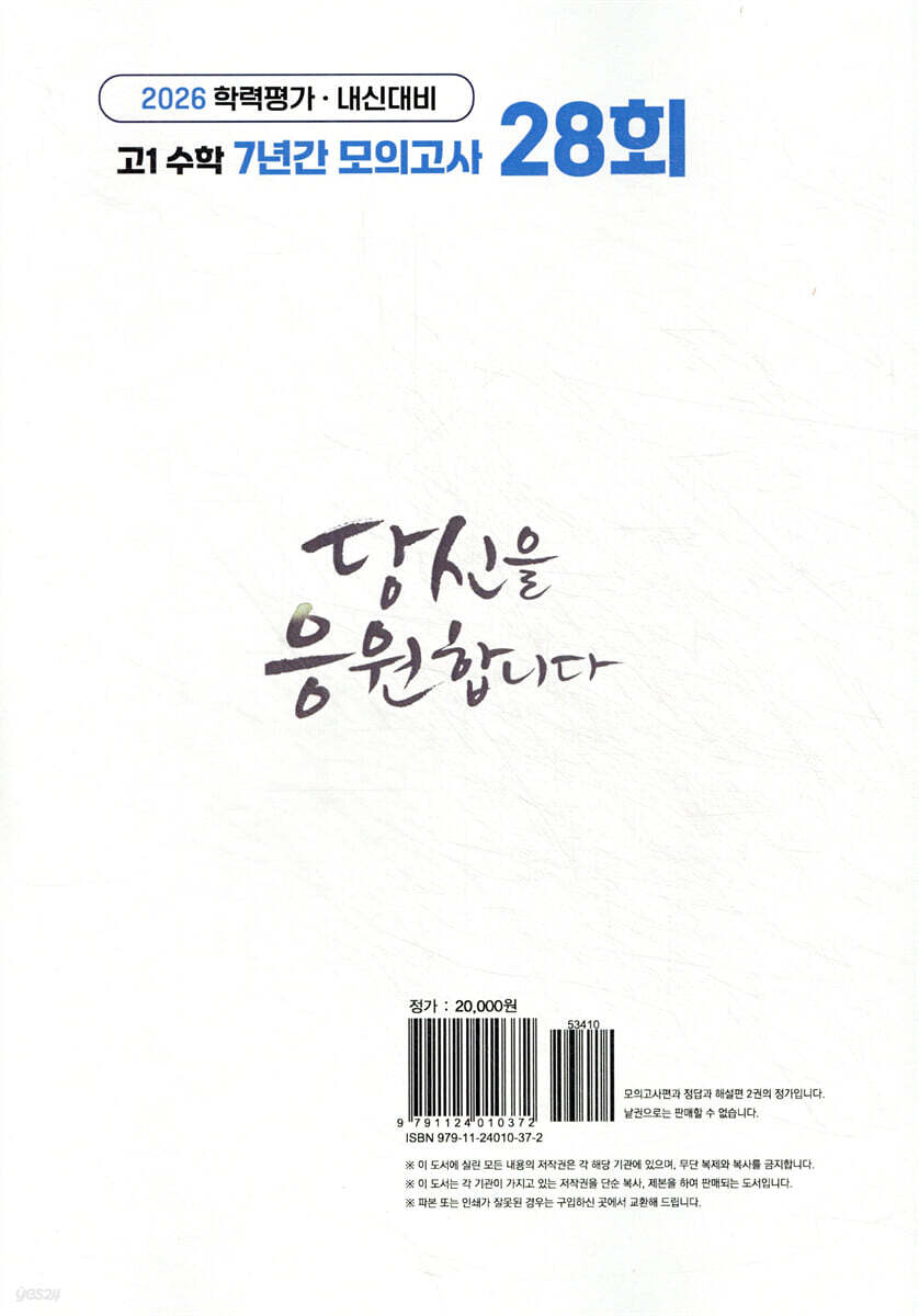 3월, 6월, 9월, 10월 학평은 단순한 학교 시험이 아닙니다. 출제자가 매년 바꾸는 유형의 흐름과 논리의 구조를 읽어야 하는 ‘전국 단위의 수능 예고전’이자 훌륭한 내신 대비시험입니다. “시험, 막상 마주하면 긴장된다. 그런데 준비가 돼 있으면 그 긴장도 기대감으로 바뀐다.” 전국연합 학력평가 문제 흐름을 반영한 문제들로, 낯선 문제가 나와도 “아 이 유형이구나” 눈치챌 수 있게 했다. 시험 전에 ‘이제 남은 시간 뭘 하지?’ 고민할 필요 없다. 문제 푸는 것만으로도 충실한 복습이 가능하도록 설계했다. 내신과 전국연합 학력평가, 두 마리 토끼를 잡아야 하는 너에게 “이제 더 이상 문제집 여러 권 들고 다니지 마라” 하고 말해준다. 한 권으로 충분하도록. 결국 목표는 명확하다. 시험장에서 “내가 이거 풀어봤다” 싶게, 마음 편히 문제를 마주하게 하는 것. 이 책은 단순한 문제집이 아닙니다. 시험을 앞둔 학생들에게 꼭 필요한 ‘전략서’이자 ‘마지막 정리 노트’입니다. 시험 준비는 전략입니다. 이 책은 그 전략의 출발점이 되어줄 것입니다. “학평과 내신을 한 번에 대비하는 단 하나의 책” “단순한 기출집이 아닌, 실전 감각 강화 교본” 고1 때부터 수능형 사고를 만드는 학생들은 다릅니다. 이 책은 그런 학생들의 시작점이자, 시험 직전 점수로 증명되는 실전력을 완성하는 교재입니다. |