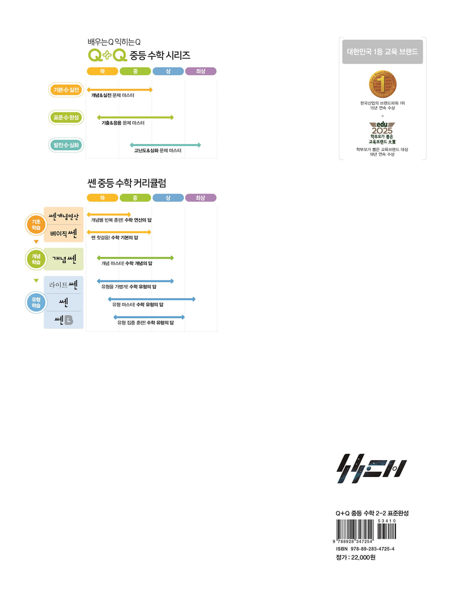 2. 중~중상 난이도 기출 유형을 총망라하여 표준 유형과 서술형 문제 구성 3. 각 유형별로 배우는 문제(Q)와 익히는 문제(Q) 구성 4. 렉처북과 워크북 1:1 유형 반복 학습으로 유형별 완벽 공략 시험에서 실력으로 입증하는 〈Q+Q〉 시리즈가 한층 업그레이드 되어 출시되었습니다. 〈Q+Q〉는 학습 용도와 난이도에 따라 3단계로 구성한 수준별 학습서입니다. 특히 〈Q+Q 표준완성〉에서는 학교 시험 출제 비중이 높은 표준 유형 및 서술형 문제 학습을 통해 완벽한 실전 대비가 가능합니다. 나에게 딱 맞는 수준의 〈Q+Q〉와 함께 여러분의 실력을 한걸음 높일 수 있기를 바랍니다. |