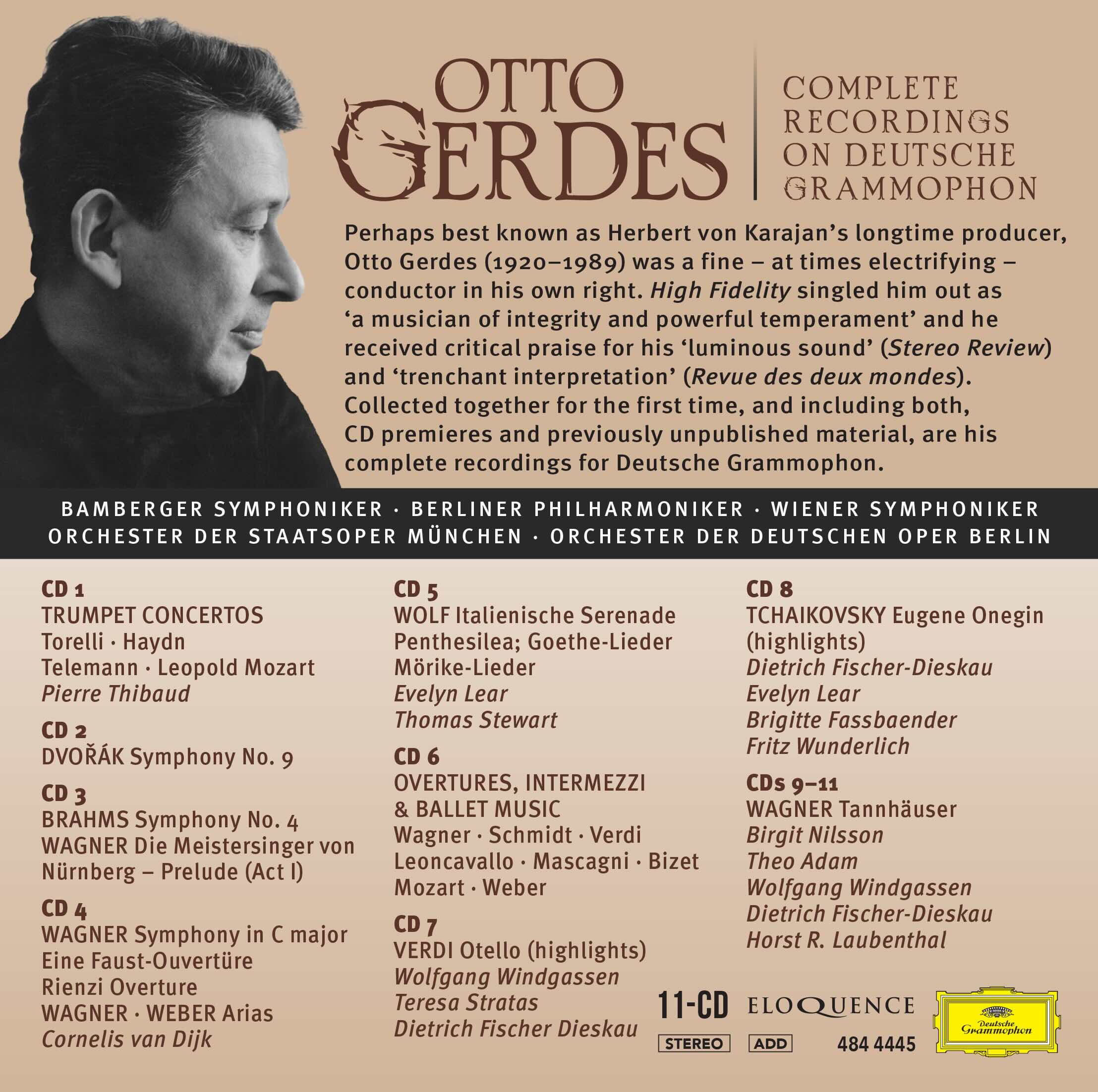 1-3) Trelli: "Estienne Rogge", trumpet concerto in D major, 4-6) Haydn: Trumpet Concerto Variations (e) major Hob. VIIe: 1, 7-10) Teleman: Trumpet Concerto in D major 11-12) Leopold Mozart: Trumpet Concerto in D major (M. Zayfeld) 【Performance】Pierre Thibault (Trumpet), Bamberg Symphony Orchestra [Recording] December 1970, Bamberg 《CD 2》* 1-4) Dvorak: Symphony No. 9 E minor Op. 95 "From the New World" [Performance] Berlin Philharmonic Orchestra [Recording] October 1964, Berlin 《CD 3》** 1-4) Brahms: Symphony No. 4 E minor Op. 98 5) Wagner: Prelude to Act I from the musical play Meisterzinger of Nuremberg [Performance] Berlin Philharmonic Orchestra [Recording] July 1961 (1-4), February 1963 (5), Berlin 《CD 4》 Wagner: 1-4) Symphony C major* 5) Faust Overture** 6) Prelude to the opera "Lienzi"** 7) "To a Far Country" from the opera "Roenglin"*** 8) Weber: From the opera "The Magician" Op. 77, "This suffering deprives hope... through the woods, across the fields."*** [Performance] Cornelis van Dijk (Tenor) (7, 8), Bamberg Symphony Orchestra [Recording] March 1962, Berlin 《CD 5》 Wolf: 1) Italian serenade* 2-4) The symphony "Penteria"* 5) 9th song from Goethe Songbook: Minhyun "Melike Songs Collection" from 6) The 28th song: Prayer 7) The 30th song: New love 8) The 31st song: Where is my comfort Goethe Collection of Songs from 9) The first song: The harp player I Who indulges in solitude 10) The second song: The harpist II "I'll sneak up on the doorway" 11) The third song: Koto player III "Who has never eaten bread with tears?" 12) Number 49: Prometheus 13) 44th song from "Melike Songs Collection": Knight of Fire* [Performance] Evelyn Lear (5-8) and Thomas Stewart (9-12) Siegfried Furinger (1-4), Vienna Junes Choir, Vienna Symphony Orchestra [Recording] September 1968, Vienna 《CD 6》*** 1) Wagner: Prelude to Act I from the musical play Meisterzinger of Nuremberg 2) Schmidt: Interlude from the opera Notre Dame 3) Verdi: Prelude to the opera The Power of Destiny 4) Leon Cavallo: Interlude from the opera "The Clown" 5) Muskani: Interlude from the opera Cavaleria Rusticana 6-10) Bizee: The first set of the opera Carmen 11) Mozart: The prelude to the opera "The Magic Flute" K.620 12) Verdi: Ballet music from opera Aida (Act 2) 13) Weber: Weber: Opera The Magical Shooter Op.77 Overture [Performance] Leipzig Broadcasting Symphony Orchestra (1-10), Berlin Broadcasting Symphony Orchestra (11-13) 【Recording】1954(4,5,6-10),1959(2),Unknown(1,3), Leipzig,1954(11),1959(12),Unknown(13),Berlin 《CD 7》 1-9) Verdi: Opera Otero (Highlights) [Performance] Wolfgang Vintgussen (Tenor/Otero), Teresa Stratas (Soprano/Desdemona) Dietrich Fisher = Dees Cow (Baritone/Iago), Monica Piper (Alto/Emilia) Valentin Dickhout (Bus/Rodovico), Hans=Bruno Ernst (Bus/Monterno) Bavarian National Opera Choir [Recording] June 1967, Munich 《CD 8》 Tchaikovsky: The opera Evgeny Onegin Op.24 (Highlights) [Performance] Dietrich Fisher = Dees Cow (Baritone/Efgeny Onegin) Evelyn Lear (Soprano/Tachyana), Brigitte Fusbender (Contralto/Origa) Fritz Vundarich (Tenor/Lensky), Marty Talvela (Bus/Gramine) Hans Marsh (Bus/Captain, Zaletsky), Munich National Opera Orchestra and Choir [Recording] July 1966, Munich 《CD 9-11》 Wagner: The opera Tanwhiser [Performance] Birgit Nilsson (Soprano/Elysabeto, Venus), Theo Adam (Bus Baritone/Helman) Wolfgang Vintgassen (tenor/tanhoiser), Dietrich Fisher=Deathcaw (Baritone/Volfram) Horst R. Laubenthal (tenor/valter), Berlin German Opera Orchestra Choir [Recording] December 1968, February 1969, May, Berlin |
