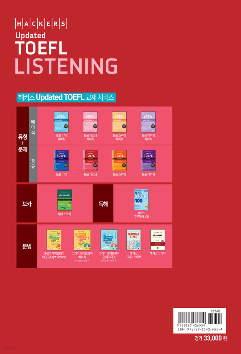 TOEFL iBT 소개 TOEFL iBT LISTENING 소개 TOEFL iBT LISTENING 화면 구성 성향별 맞춤 공부 방법 해커스 학습플랜 DIAGNOSTIC TEST TASK 1 Listen and Choose a Response Introduction Section I. Wh- Questions 1. What & Which Questions 2. Who & Where/When Questions 3. Why & How Questions Section II. Non Wh- Questions 1. Be/Auxiliary Verb Questions 2. Tag Questions 3. Alternative Questions 4. Suggestion/Offer/Request Questions Section III. Statements 1. Informative Statements 2. Advisory Statements TASK 2 Listen to a Conversation Introduction Section I. Question Types 1. Main Topic/Purpose Questions 2. Suggestion/Offer Questions 3. Problem Questions 4. Do Next Questions 5. Detail Questions 6. Intention/Attitude Questions 7. Inference Questions Section II. Conversation Topics 1. Daily Life 2. Campus Life 3. Work & Service TASK 3 Listen to an Announcement Introduction Section I. Question Types 1. Main Topic/Purpose Questions 2. To Do Questions 3. Detail Questions 4. Intention Questions 5. Inference Questions Section II. Announcement Topics 1. Campus Events 2. Student Activities 3. Lectures & Facilities TASK 4 Listen to an Academic Talk Introduction Section I. Question Types 1. Main Topic/Purpose Questions 2. Discuss Next Questions 3. Detail Questions 4. Intention Questions 5. Organization Questions 6. Inference Questions Section II. Academic Topics 1. Humanities 2. Arts 3. Social Science 4. Physical Science 5. Life Science ACTUAL TEST 1 ACTUAL TEST 2 TASK별 실전 필수 어휘 [부록] 미국식 영어와 영국식 영어의 차이 [부록] 정답·스크립트·해석·정답단서 [책 속의 책] |