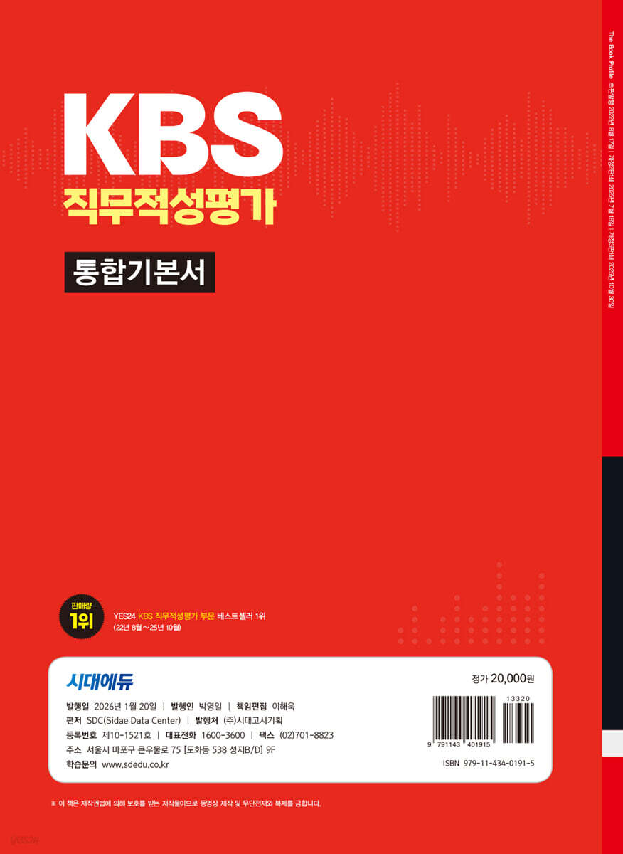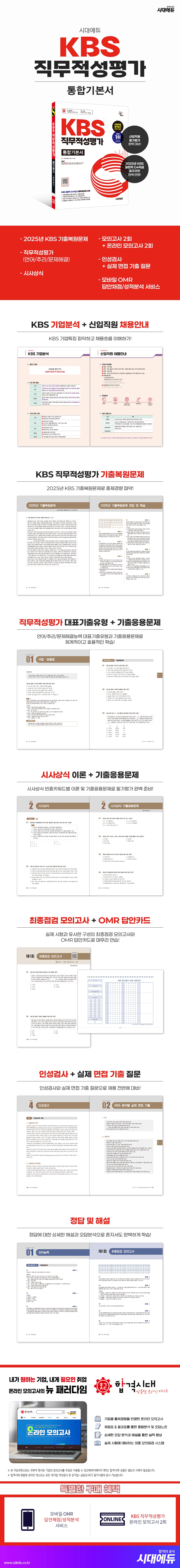 KBS는 공영방송의 공적 책무를 수행하고 미래 미디어 환경 변화를 주도할 신입직원을 선발한다. 시대에듀는 KBS 직무적성평가 부문 판매량 1위의 출간 경험을 토대로 다음과 같은 특징을 가진 도서를 출간하게 되었다.