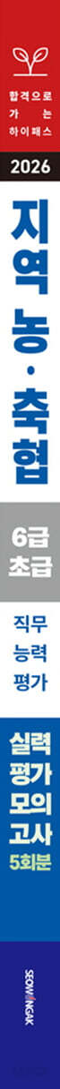 01. 농협 기업정보 02. 농업·농촌 10대 이슈 PART 01 실력평가 모의고사 5회 01. 제01회 실력평가 모의고사(70문항/70분) 02. 제02회 실력평가 모의고사(70문항/70분) 03. 제03회 실력평가 모의고사(70문항/70분) 04. 제04회 실력평가 모의고사(60문항/60분) 05. 제05회 실력평가 모의고사(60문항/60분) PART 02 정답 및 해설 01. 제01회 정답 및 해설 02. 제02회 정답 및 해설 03. 제03회 정답 및 해설 04. 제04회 정답 및 해설 05. 제05회 정답 및 해설 OMR 답안지(70문항/70분) OMR 답안지(60문항/60분) |