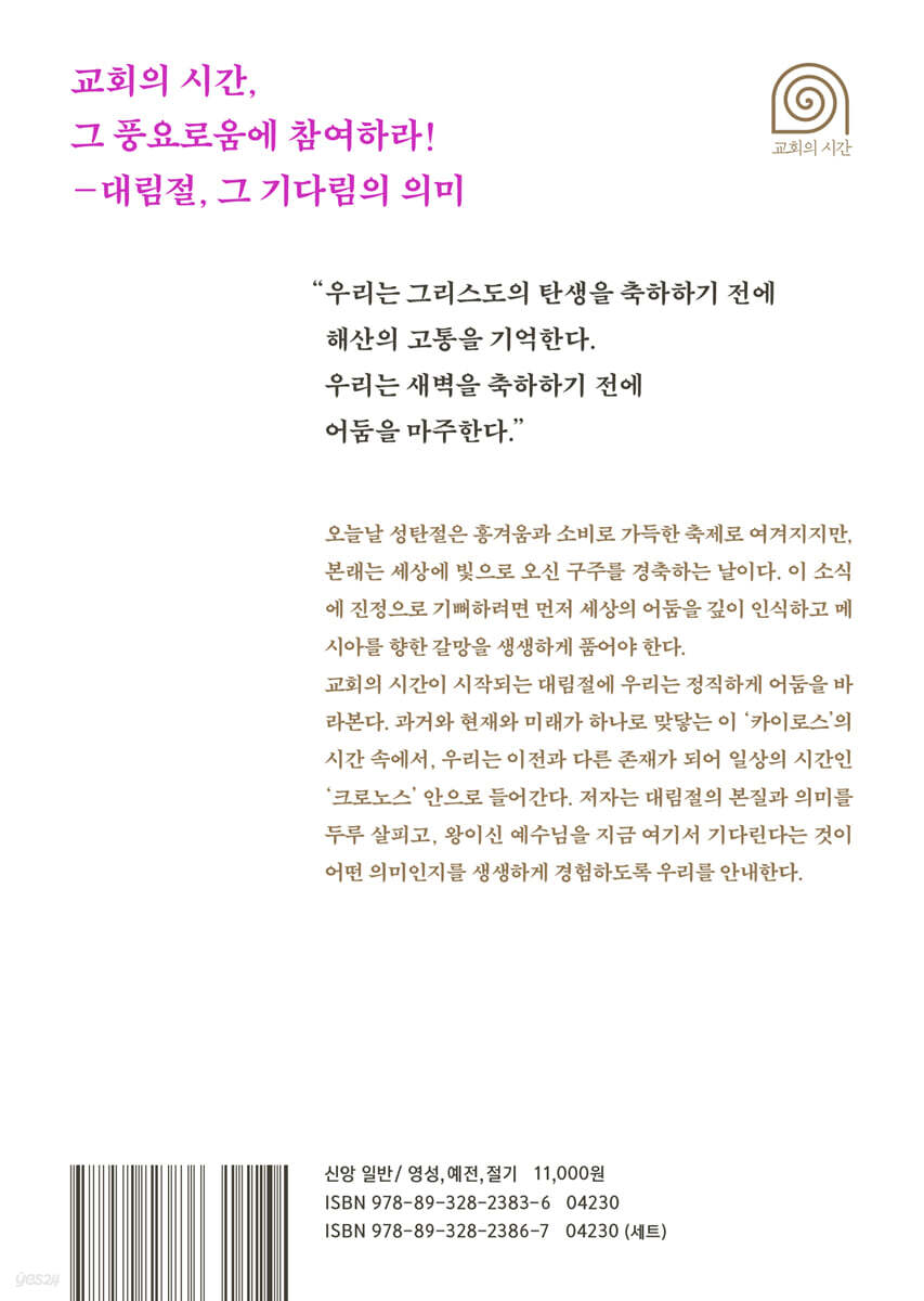 우리는 새벽을 축하하기 전에 어둠을 마주한다.” 대림절의 본질을 사유하는 깊고 고요한 묵상 한 해의 마지막에 교회는 그리스도의 탄생을 기억하며 교회력의 새해를 연다. 성탄절은 세상에 빛으로 오신 구주를 경축하는 기쁨의 날이지만, 교회 밖에서는 흥겨움과 소비로 가득한 축제로 여겨진다. 그런데 이 소식이 진정 기쁨이 되려면 먼저 세상의 어둠을 깊이 인식하고 메시아를 향한 갈망을 생생하게 품어야 한다. 교회력이 성탄절이 아닌 대림절로 시작한다는 사실은, 이 땅에 사는 그리스도인이 가져야 할 본질적 태도가 다름 아닌 기다림임을 일깨운다. 교회의 한 해는 왕이 오시기를 기다리는 깊은 열망으로 시작한다. 『오늘이라는 예배』, 『밤에 드리는 기도』 등에서 티시 해리슨 워런은, 유려한 문장 안에 신학적 사유와 자전적 통찰을 담아내며 독자를 더 깊은 신앙의 세계로 초대해 왔다. 이제 『대림절, 소망하며 기다리다』를 통해, 저자는 대림절의 본질을 사유하며 교회력을 여는 대림절 묵상으로 우리를 안내한다. 대림절의 의미를 두루 살피고, 왕이신 예수님을 지금 여기서 기다린다는 것이 어떤 의미인지를 생생하게 경험하도록 인도한다. 고요한 계절, 일상의 시간 속에서 영원을 바라보는 기다림의 순례자들을 위한 안내서 대림절(Advent)은 ‘도래’를 의미하는 라틴어 ‘아드벤투스’(adventus)에서 온 이름으로, 그리스도의 오심을 준비하며 고대하는 기간이다. 성탄절 4주 전 일요일에 시작되는 이 절기는 단순히 2천 년 전 베들레헴의 아기로 태어나신 성육신의 오심만을 기다리지 않는다. 저자는 역사적으로 교회가 세 가지 오심을 고대해 왔다고 밝힌다. 곧 성육신하신 그리스도의 오심(구속의 도래), 마지막 때 승리의 왕으로서의 오심(영광 중의 도래), 지금 이 땅에서 성령의 사역과 말씀과 성례를 통해 함께하시는 오심(거룩함의 도래)이다. 즉 대림절은 “과거와 현재와 미래가 동시에 존재하는 지극히 역설적인 절기”(16쪽)이며, 일상의 시간인 ‘크로노스’ 안에 있으면서도 시간 바깥에서 영원을 바라보는 ‘카이로스’의 시간이다. 저자는 대림절을 안내하며, 일상 속에서 영원을 바라보는 기다림의 순례자에게 통찰을 준다. 교회의 시간이 시작되는 대림절에 우리는 정직하게 어둠을 바라본다. 죄가 들어와 손상된 세상을 고통스럽게 마주하며, 이스라엘과 함께 평화가 없는 세상에서 하나님의 샬롬을 대망한다. 고통과 슬픔이 만연한 오늘 우리의 삶에 하나님의 치유가 나타나기를 열망한다. 전쟁과 정치적 갈등으로 망가져 가는 세계를 속수무책으로 안타까워하며, 그리스도가 영광 중에 오셔서 온 세상에 하나님의 회복이 일어나기를 갈망한다. 우리는 여전히 회복이 필요한 세상 속에서, 믿음과 소망으로 빚어지는 기다림으로 교회력의 한 해를 시작한다. 교회의 시간, 그 풍요로움에 참여하라! 기다림의 계절 속 다시 회복하는 신앙 교회력을 실천하는 것은 하나님의 말씀을 살아 내는 한 방식이며, 우리가 세상의 시간이 아니라 교회의 시간에 속해 있음을 삶으로 고백하는 것이다. 대부분의 사람이 흥분과 분주함에 휩싸인 채 맞이하는 연말에, 대림절은 우리에게 속도를 늦추고, 침묵과 고요와 쉼 안으로 들어가 마음속에 그리스도를 위한 공간을 준비하라고 요구한다. 대림절에 대해 생각할 때가 아니라 대림절을 실천할 때, 우리는 이 기다림의 본질에 가까이 다가갈 수 있다. 저자는 대림절의 기도와 훈련을 소개하며, 교회력의 리듬으로 살아가는 것이 무거운 과제가 아니라 은혜로운 초대임을 주지시킨다. 효율성과 생산성을 최고의 가치로 여기는 이 시대 문화 속에서, 느리고 오랜 기다림을 지키기란 힘겨운 일이다. 그러나 기다림은 우리의 한계를 드러내며, 비효율의 아름다움을 가르쳐 주는 교사다. 어머니의 태 안에서 아기가 형성되듯, 하나님은 교회의 기다림 안에서 그리스도인 한 사람 한 사람을 빚어내신다. 특히 삶에 지쳐 무너진 영성의 리듬을 회복하려는 그리스도인들에게, 대림절은 새로 시작하기 좋은 계절이다. 『대림절, 소망하며 기다리다』는 오실 우리의 왕을 기다리는 대림절을 생생한 소망으로 맞이하도록 돕는 길잡이이자, 신앙의 내용과 형태를 모두 소중히 여기는 균형 잡힌 믿음 생활을 격려하는 지침서가 될 것이다. ■ 이 책의 특징 -대림절의 본질과 의미에 대한 읽기 좋고 깊이 있는 안내서 -아름다운 문장과 삶의 진솔한 경험을 통한 신앙적 성찰 -기독교의 중요한 주제인 기다림에 대한 풍부한 해석 -교회력, 절기와 예전이라는 교회의 전통을 재조명 -신앙의 내용과 형태를 모두 소중히 여기는 균형 잡힌 믿음 생활을 격려 ■ 대상 독자 -대림절을 기억하며 다시 새롭게 영성의 리듬을 회복하려는 그리스도인 -세상과 우리 삶 속에서 그리스도의 오심이 어떤 의미인지 고찰하고자 하는 독자 -교회력과 절기를 온전히 이해하여 신앙 성숙의 계기로 삼고자 하는 독자 -일상에서 하나님 나라의 영원한 본질을 기억하고 살아가고자 하는 독자 -대림절에 대한 배경 지식과 적용점을 얻고자 하는 목회자, 교사, 소그룹 인도자 |