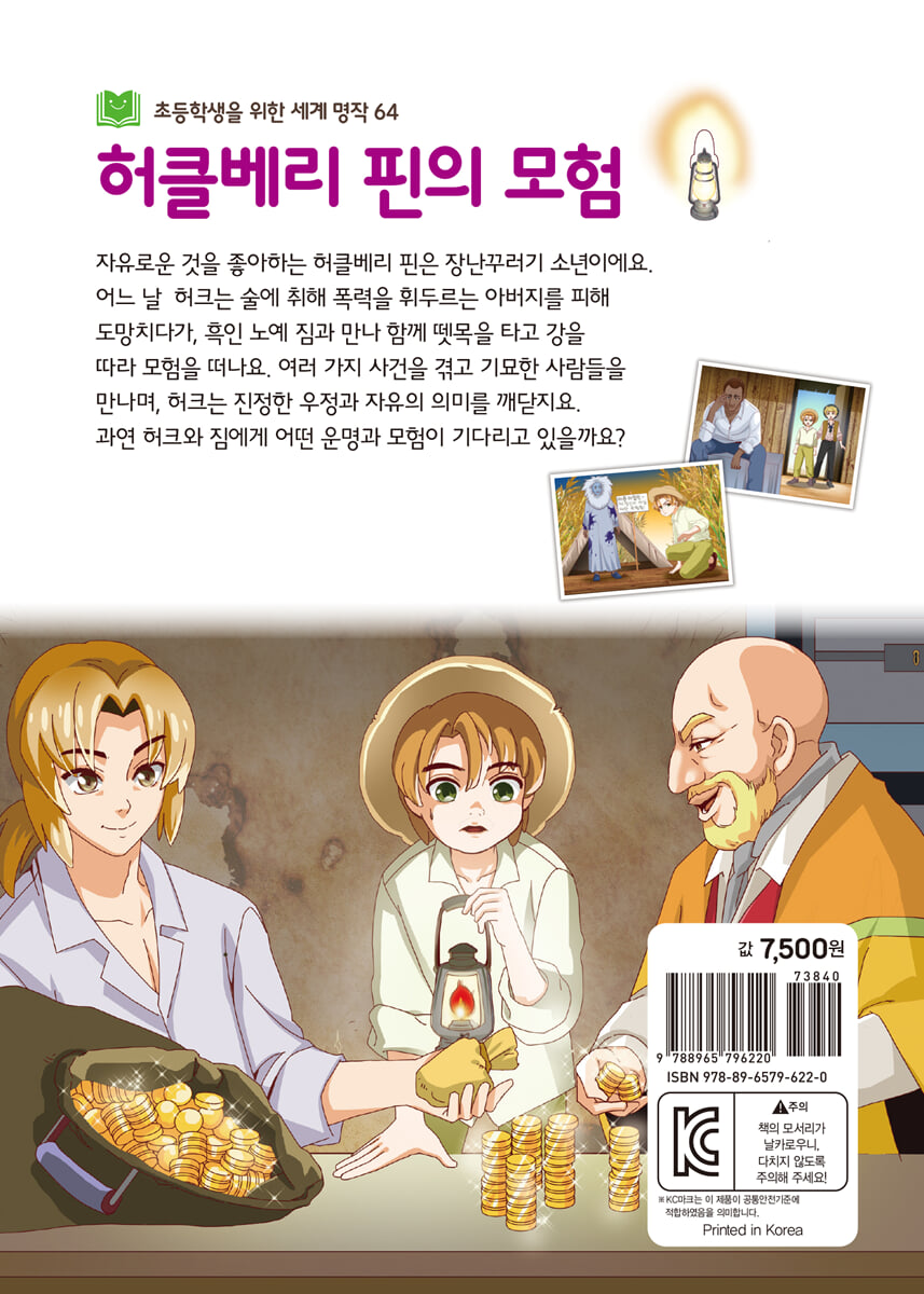 자유를 꿈꾸는 허클베리 핀과 노예 짐의 신나는 모험 이야기 자유로운 것을 좋아하는 허클베리 핀은 장난꾸러기 소년이에요. 어느 날 허크는 술에 취해 폭력을 휘두르는 아버지를 피해 도망치다가, 흑인 노예 짐과 만나 함께 뗏목을 타고 강을 따라 모험을 떠나요. 여러 가지 사건을 겪고 기묘한 사람들을 만나며, 허크는 진정한 우정과 자유의 의미를 깨닫지요. 과연 허크와 짐에게 어떤 운명과 모험이 기다리고 있을까요? |