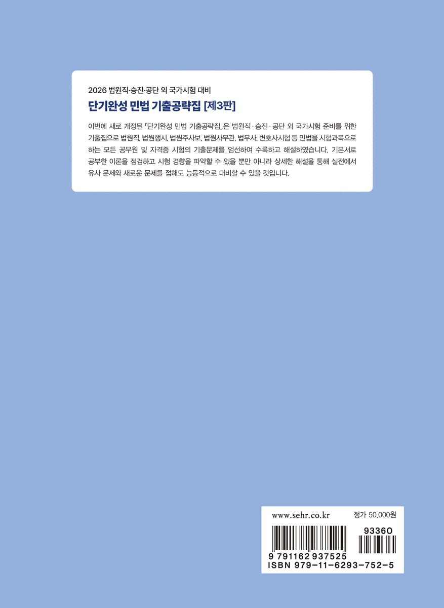 본서는 법원서기보시험, 법무사시험, 법원행시, 법원내부시험 등 민법을 시험과목으로 준비하고 있는 수험생들에게 정확한 기출과 해설을 제공함으로써 출제경향과 내년도 출제될 문제를 미리 알 수 있도록 하기 위해 만들었습니다. 이 기출문제집을 통해 통계적 사고를 하고 결국은 “나오는 것만 나온다”라는 믿음이 생기길 바랍니다. 기출문제를 통한 킬링포인트를 잡으셔야 하는데 기출문제란 법원서기보시험만이 아닌 변호사시험, 법무사시험, 기존 사법시험, 사무관시험 등 다양한 시험이 수록된 것을 의미합니다. 문제형식은 사법시험과 변호사시험이 가장 어렵습니다. 하지만 올해 시험에서도 느끼셨겠지만 법원관련 시험에서 잘 못 보던 판시사항 등은 다른 민법시험에서 이미 출제되었습니다. 또한 기출문제는 지문형식보다는 통합문제형식으로 접하셔야 실전에서 도움이 됩니다. [이 교재의 특성] 1. 법원서기보시험, 법원행시, 법원주사보, 법원사무관시험, 기존 사법시험과 변호사시험, 법무사시험에서 출제된 기출문제 중 중요한 문제를 모두 수록하여 법원직시험에서는 전혀 출제되지 않았던 판례 지문이라도 타 시험에서 미리 출제되었던 것을 느끼실 수 있도록 하였습니다. 2. 2025년 법원서기보시험, 2024년,2025년 법무사시험 등 최신기출문제를 모두 수록하였습니다. 3. 2025년 10월 현재 전원합의체 변경된 판례까지 수험에 필요한 판례는 해설 수록하였습니다. 4. 지원림, 김형배, 김준호 교수님들의 기본서 내용을 참조하여 수험 공통 부분을 해설 지문처리하였습니다. 5. 최근 제·개정된 법령을 해설 수록하였습니다. [이번 개정판의 특성] 기존 기출문제집에 수록되어 있던 공인노무사, 변리사 시험 등 각종 자격증 시험문제는 삭제하였습니다. 법원관련 시험도 2009년 이전 문제는 배제하여 새로운 기출문제로 보충하였습니다. 중요 기출문제는 계속 반복되어 출제되어서 새로운 기출에 반영되었으므로 이번 전면 개정판으로 충분한 대비가 될 것입니다. [이 교재의 활용법] 1. 민법 기본서를 공부하실 때 옆에 두시고 출제방향을 잡아가시기 바랍니다. 보다 교과서를 명확하게 이해하실 수 있을 겁니다. 2. 기본서를 읽고 다른 문제집을 푸실 때도 본 교재를 먼저 보시고 큰 출제 틀을 이해하시기 바랍니다. 3. 내년도 시험 직전에도 이 기출문제집을 반드시 다시 풀어보시기 바랍니다. 수험에서는 항상 나오는 것이 반복해서 나옵니다. 이 사실을 빨리 아신다면 내년도 민법시험에서는 고득점하실 수 있습니다. 4. 법원직시험을 준비하는 학생들이라면 이 기출문제집에 추가로 내년에 있을 변호사시험(1월 예정)문제를 반드시 확인하시길 바랍니다. 이 교재를 보는 여러분에게 당부하고 싶은 말은 우리는 망각합니다. 그러기에 계속 반복해야 합니다. 결국 반복에 지치지 않는 자가 끝내 합격합니다. 이 교재를 통해 시험을 보지 않고도 시험을 본 것처럼 똑같이 느껴질 때 합격이 실현됩니다. 이 교재를 통해 기본에서 다졌던 내용을 수동적 학습을 능동적 연습으로 바꾸시길 바랍니다. 이 교재를 읽고 강의를 듣고 중요도를 체크하시면서 시험 마지막 순간까지 도움이 되셨으면 하는 바람입니다. 수험민법답게 늘 본인이 가고 있는 길에, 지금 이 순간이 도움이 되고 있는지 확인하십시오. 막연히 양이 주는 허황된 만족감에 빠져 있는 건 아닌지, 정작 꼭 알고 있어야 할 조문과 법리, 판례는 소홀히하고 있는 건 아닌지, 기출문제를 다시 한번 보시면서 점검하셔야 합니다. 기적은 있기 때문에 믿는 것이 아니라 믿기 때문에 일어난다고 알고 있습니다. 그리고 저는 상처가 꽃이 되는 순서를 굳게 믿고 있습니다. 꼭 이루십시오. 꿈은 이룰 때 더욱 빛이 납니다. 여러분이 단번에 합격하시는 것을 꿈에서도 기원하겠습니다. 머리말을 쓰며 꼭 감사드리고 싶은 분들이 있습니다. 사랑하는 어머니와 늘 함께 놀고 있는 진표님, 동료애 속에 즐겁게 강의할 수 있게 해주시는 우리 수프림팀 교수님들, 좋은 원고를 낼 수 있도록 항상 조언해 주시고 늦은 원고에도 출판에 온 힘을 다해주신 도서출판 새흐름의 이종은 대표님, 해설 보완과 모든 정성을 기울여주신 편집장님 이하 감사드립니다. 2025년 10월 23일 황보수정 |