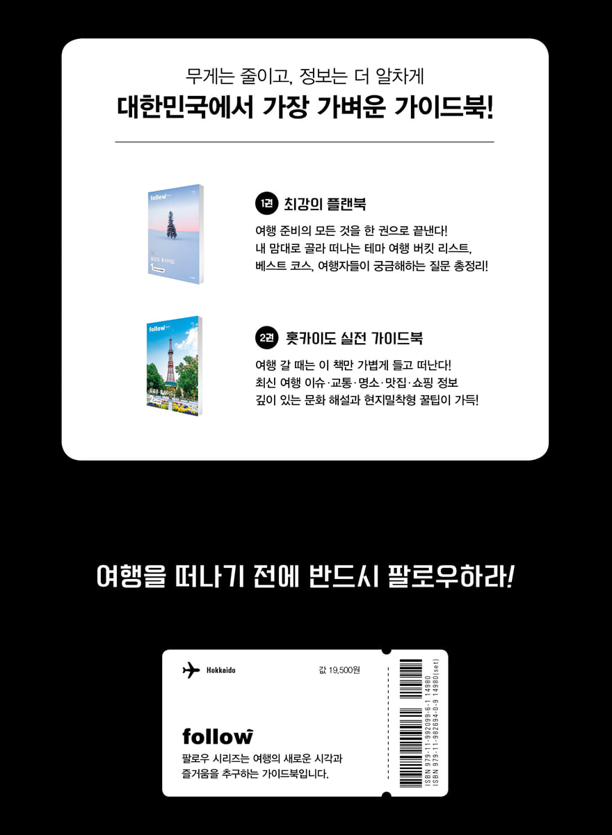 홋카이도는 계절마다 완전히 다른 매력을 선사한다. 2월 눈 축제, 4월 벚꽃, 7월 라벤더밭, 8월 일본 최대 맥주 축제, 10월 단풍길, 한겨울 설경 인증샷 포인트까지, 대표 풍경과 축제를 여행자의 시선으로 소개하고, 추천 명소와 날씨 정보까지 챙겨 언제 방문해도 알찬 여행 계획을 세울 수 있는, 사계절 여행 필수 가이드다. 2. 동선 OK! 명소 OK! 도시별 ZONE 가이드 단순 명소 나열이 아니라 여행 동선을 중심으로 설계된 가이드북. 삿포로, 오타루, 하코다테, 비에이, 후라노 등 주요 도시를 ZONE 단위로 세분화하고, 명소ㆍ맛집ㆍ쇼핑 스폿을 지도와 함께 표시해 한눈에 확인할 수 있다. 최적의 추천 루트와 이동 시간, 교통 노선까지 상세히 담아, 책을 따라가기만 해도 목적지까지 쉽게 찾아갈 수 있도록 구성했다. 3. 테마별 추천 일정, 취향 맞춤 코스북 홋카이도를 한층 더 특별하게 즐기는 맞춤형 테마 코스가 가득하다. 삿포로 맥주 축제를 생생하게 체험하거나, 최고의 스키장에서 눈 위를 누비고, 렌터카로 광활한 자연 속을 달리며 여유를 즐기거나, 당일치기 힐링 온천 여행으로 몸과 마음을 녹일 수도 있다. 영화 〈러브레터〉 촬영지를 따라 걷고, 위스키 양조장을 탐방하는 소소한 즐거움까지, 다양한 선택지가 기다린다. 여행 목적과 취향에 맞춰 바로 골라 즐기며 나만의 맞춤 코스를 완성할 수 있는 가이드북이다. 4. 지역별ㆍ메뉴별 맛집 총정리, 한입 미식 지도 홋카이도의 미식은 여행의 핵심이다. 대표 요리와 지역별 인기 맛집, 디저트, 특산물 정보를 풍성하게 담고, 메뉴별 추천 맛집과 예약ㆍ결제 팁까지 체계적으로 정리했다. 주문 방법과 메뉴판 읽는 요령, 현지인처럼 제대로 먹는 법은 물론, 홋카이도만의 특별한 해장 문화인 시메파르페ㆍ킷사텐 이용법, 일본 체인 카페에서 즐기는 아침 식사 메뉴 등도 꼼꼼하게 안내한다. 단순히 ‘무엇을 먹을까’에서 그치지 않고, 오늘은 어떤 메뉴를 먹을지 고민 없이 골라 즐길 수 있는 완벽한 미식 노하우를 제공한다. 5. 열차ㆍ버스ㆍ렌터카 정보 올인원! 스마트한 교통 가이드 공항 입국 절차부터 JR 열차, 버스, 자전거, 렌터카, 버스 투어까지 홋카이도의 모든 교통 정보를 한 권에 담았다. 각 교통수단의 소요 시간, 운행 간격, 요금, 정류장 위치, 환승 정보를 쉽게 비교할 수 있으며, 예약이 필요한 교통수단은 QR코드로 바로 확인할 수 있다. 홋카이도 이동 시 필요한 교통 패스 정보도 함께 정리해, 여행 일정에 맞춰 가장 효율적인 이동 수단을 바로 선택하도록 돕는다. 일본 운전 초보자도 걱정 없는 도로 표지판 정보와 주행 가이드, 통행료, 주차 요금까지 포함해, 이 책 하나면 홋카이도 곳곳을 편리하게 여행할 수 있다. 6. 홋카이도 오미야게 한눈에! 한정템 쇼핑북 삿포로의 다누키코지 상점가와 오타루 사카이마치 쇼핑 특화 거리부터 여행자들이 꼭 들러야 할 돈키호테, 백화점, 마트, 로드숍까지 홋카이도의 쇼핑 스폿을 총정리했다. 지역별 인기 상품과 오미야게 매장, 마트ㆍ편의점에서만 만날 수 있는 홋카이도 한정 아이템, 슈퍼마켓 쇼핑 노하우를 풍부한 사진과 함께 낱낱이 소개한다. 면세 혜택과 쿠폰 활용법, 쇼핑 시 주의해야 할 국내 반입 불가 품목 안내 등 여행에 꼭 필요한 실용 정보까지 한가득 담았다. 7. 여행 준비부터 현장 활용까지! 홋카이도 완전 체크북 홋카이도 여행 준비의 모든 단계를 체계적으로 안내한다. 항공권, 숙소, 환전, 계절별 준비물 등 필수 정보를 단계별 체크리스트로 제공해 초보자도 쉽게 준비할 수 있다. FAQ 섹션에서는 교통, 숙박, 식품 반입 규정, 긴급 상황 대처 등 여행 중 궁금한 사항을 한눈에 확인할 수 있어 현장에서 바로 활용 가능하다. 또한 책에 소개된 주요 장소는 구글맵에 저장할 수 있는 전용 지도 QR코드와 함께 제공해, 여행 계획과 실전 모두를 한 권으로 완성할 수 있다. |