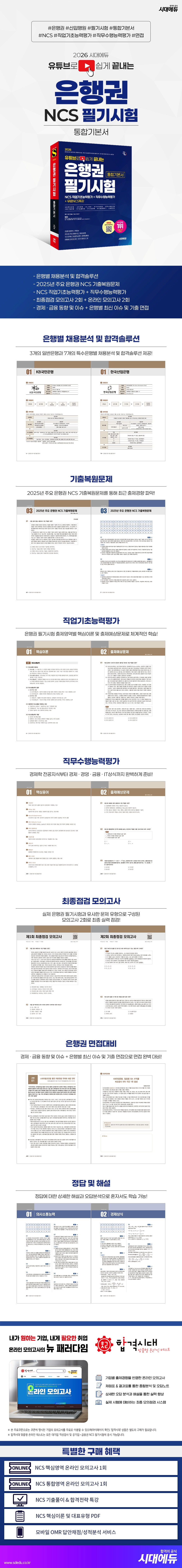 [Add+] 특별부록CHAPTER 01 일반은행 채용 가이드CHAPTER 02 특수은행 채용 가이드CHAPTER 03 2025년 주요 은행권 NCS 기출복원문제[PART 1] 직업기초능력평가CHAPTER 01 의사소통능력CHAPTER 02 수리능력CHAPTER 03 문제해결능력CHAPTER 04 자원관리능력CHAPTER 05 대인관계능력CHAPTER 06 정보능력CHAPTER 07 조직이해능력CHAPTER 08 기술능력[PART 2] 직무수행능력평가CHAPTER 01 전공지식(경제)CHAPTER 02 경제상식CHAPTER 03 경영상식CHAPTER 04 금융상식CHAPTER 05 IT상식[PART 3] 최종점검 모의고사제1회 최종점검 모의고사제2회 최종점검 모의고사[PART 4] 은행권 면접대비CHAPTER 01 경제ㆍ금융 동향 및 이슈CHAPTER 02 은행별 최신 이슈CHAPTER 03 은행권 기출 면접[별 책] 정답 및 해설Add+ 특별부록PART 1 직업기초능력평가PART 2 직무수행능력평가PART 3 최종점검 모의고사