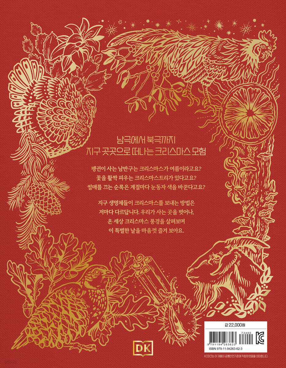 남극에서 북극까지 지구 곳곳으로 떠나는 크리스마스 모험 크리스마스 하면 무엇이 떠오르는가? 아마도 흰 눈이 펑펑 내리는 날, 선물을 나누어주러 눈썰매를 타고 온 산타의 모습이 그려질 것이다. 하지만 전 세계 크리스마스 풍경은 다 똑같을까? 북반구에 살고 있는 우리에게 12월의 크리스마스는 당연히 눈과 얼음으로 가득하고, 밤도 길고 어두울 것이다. 하지만 지구 반대편 남반구에 살고 있는 사람들은 무더운 한여름에 크리스마스를 맞이할 것이고, 꽃을 활짝 피운 크리스마스트리도 볼 수 있다. 이 책은 우리가 크리스마스 하면 흔히 떠올리는 고정된 생각에서 벗어나, 지구 곳곳의 생명체들이 보내는 다채로운 크리스마스 풍경을 생생히 바라볼 수 있도록 한다. 36가지 동물과 식물로 만나는 각양각색 크리스마스 그리고 우리가 잘 몰랐던 크리스마스 이야기들 크리스마스트리 하면 뾰족뾰족하고 키 큰 전나무가 먼저 떠오르겠지만, 세상은 넓고 크리스마스트리는 많다! 가장 추운 날에 크리스마스 축제가 있는 북반구에서는 알록달록한 꽃을 피우는 크리스마스트리를 생각하기 어려울 것이다. 하지만 남반구 열대나 사막 지역은 뜨거운 날이 지속되는 한여름이 바로 크리스마스이다. 이 책에서 만나 보자, 오스트레일리아에서 자라는 무드자라는 식물이 크리스마스에 딱 맞추어 멋진 금빛 꽃을 활짝 피우는 장면을! 산타 이야기는 어떨까? 우리에게는 눈썰매를 타고 산타가 찾아오는 장면을 떠올리는 것이 익숙할 것이다. 하지만 북유럽에서는 크리스마스의 염소인 요울루푸키가, 이 염소를 타고 다니는 요정과 함께 찾아와 산타처럼 선물을 준다고 한다. 이탈리아에서는 순록이 아닌 당나귀를 타고 온 성녀 루치아가 해마다 아이들에게 선물을 주러 온다는 이야기가 전해진다. 이것도 크리스마스와 관련되었다고? 보면 볼수록 신기하고 경이로운 자연의 세계 이처럼 《DK 세상 모든 크리스마스》는 넓은 시각으로 전 세계 여러 지역의 크리스마스 풍경을 소개하는 한편, 그와 관련된 동식물의 몰랐던 사실들을 소개한다. 크리스마스가 다가오면 트리와 함께 흔히 볼 수 있는 포인세티아의 새빨간 부분이 알고 보면 꽃이 아니라, 꽃을 감싼 포엽이라는 점, ‘루돌프 사슴 코’라는 캐럴로 익숙한 산타의 썰매를 끄는 동물이 사실은 사슴이 아니라 순록이라는 사실! 그리고 순록은 계절마다 눈동자 색깔을 바꾼다는 점 등 흥미로운 사실들을 알 수 있다. 한편으로는 거미줄, 멧돼지, 고양이와 같이 언뜻 보면 크리스마스와 전혀 상관없어 보이는 키워드도 등장하는데, 알수록 신기하고 경이로운 자연의 세계를 크리스마스라는 설레고 흥미로운 주제와 연결시켜 풀어 낸 점이 인상적이다. 영국 돌링킨더슬리(DK) 출판사가 선보이는 스토리북 ‘100가지 사진으로 보는 신비’ 시리즈의 크리스마스 특별판 이 책은 백과사전의 명가인 영국 돌링킨더슬리(DK) 출판사가 선보이는 ‘스토리북 스타일’로 구성되어 있다. 크고 작은 사진들과 긴 설명글로 가득했던 전통적 백과사전 형식에서 벗어나, 아름다운 사진으로 지면을 가득 채우고 감성을 더한 이야기들을 들려주는 색다른 방법을 취했다. 책과함께어린이는 DK의 이 책들을 ‘100가지 사진으로 보는 신비’ 시리즈로 출간하고 있다. 어린이 과학 분야 베스트셀러 《우주의 신비》, 《지구의 신비》, 《동물의 신비》, 《공룡과 멸종 생물》, 《자연의 신비》, 《새들의 신비》에 이어 크리스마스 특별판으로 이번 책이 출간되었다. 책의 내용만큼 장정도 근사하다. 크리스마스 분위기를 물씬 풍기는 붉은 표지에, 금박을 입힌 모든 페이지의 가장자리는 고급스러운 느낌을 주는 《DK 세상 모든 크리스마스》는 크리스마스 선물용으로 더할 나위가 없다. |