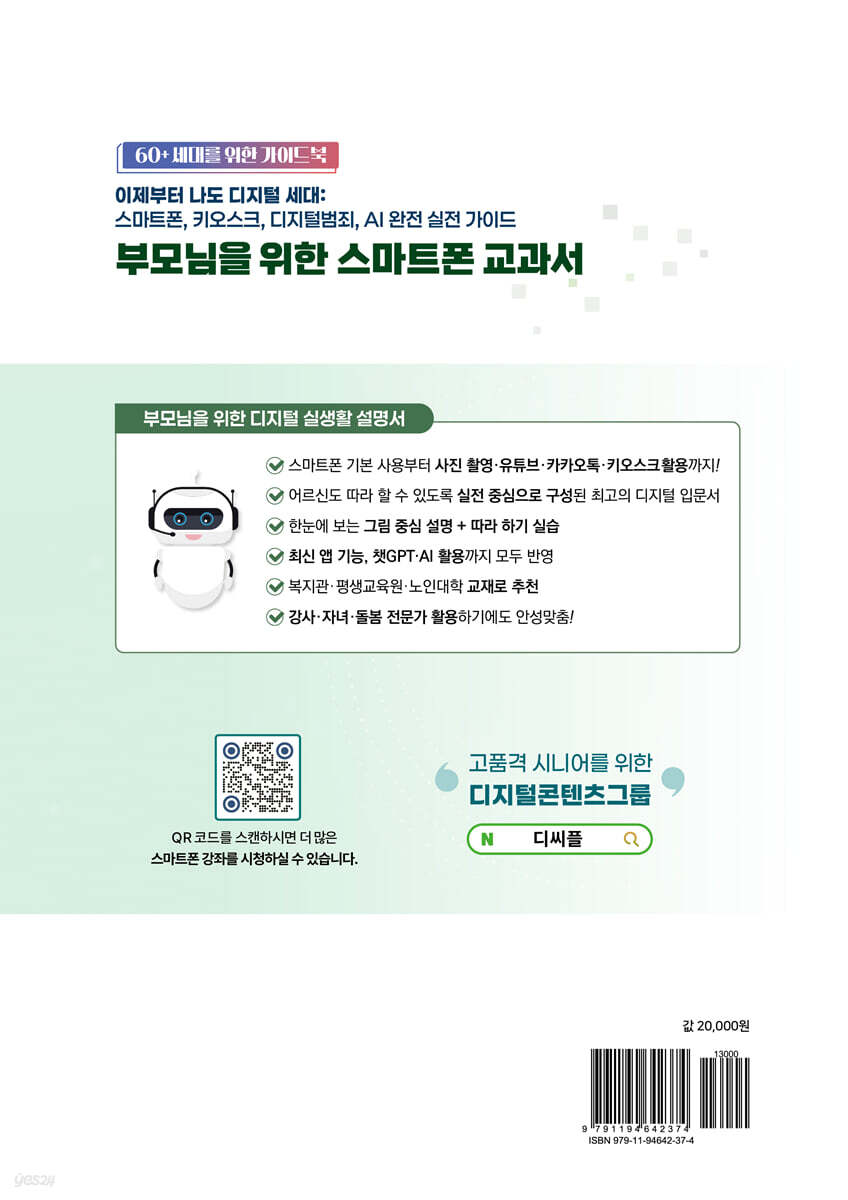 - 스마트폰으로 여는 시니어의 즐거운 일상 - 이 책은 액티브 시니어?실버세대를 위한 스마트폰 활용법을 쉽게 알려주는 종합적인 안내서입니다. 초보자를 위한 기본적인 스마트폰 개요부터 고급 기능까지 단계별로 설명하여, 디지털 환경에 익숙하지 않은 시니어들도 쉽게 적응할 수 있도록 구성되어 있습니다. 이번 책은 스마트폰의 지속적인 업데이트와 변화에 맞춰 최신 기능과 인터페이스를 반영하였습니다. 화면 구성과 버튼 배열이 점점 달라지고, 운영체제 및 앱의 기능이 새롭게 추가되는 만큼, 최신 스마트폰 환경에서도 혼란 없이 활용할 수 있도록 상세한 설명을 더했습니다. 먼저, 4차 산업혁명 시대에 스마트폰 활용이 왜 중요한지 강조하며 학습의 필요성을 일깨워 줍니다. 또한, 스마트폰의 운영체제, 제조사, 통신사 등 기본적인 정보를 제공하고, 기기의 기본 조작법과 화면 구성, 주요 버튼 및 아이콘의 역할을 자세히 설명하여, 초보자도 쉽게 이해하고 활용할 수 있도록 안내합니다. 디바이스 최적화, 저장 공간 관리 등 성능 유지 및 효율적인 사용법을 알려주고, 연락처 관리, 화면 편집, 폴더 관리, 위젯 활용 등 개인 맞춤형 설정 방법도 포함되어 있어, 평소 시니어분들이 어렵게 느껴졌던 부분도 친절하게 설명되어 있습니다. 특히, 카메라의 기본 촬영법부터 최신 사진 편집 앱 활용까지 사진 관련 내용도 풍부하게 다루고 있어, 일상에서 추억을 더욱 생생하게 간직할 수 있도록 도와줍니다. 또한, 구글 서비스, 카카오톡, 유튜브 등 자주 사용하는 앱의 최신 기능을 반영하여, 보다 효율적이고 편리하게 사용할 수 있도록 구성하였습니다. 최근 개편된 카카오톡의 새로운 디자인과 메뉴 구성을 반영해, 변경된 인터페이스에 따른 톡클라우드, 프로필 관리, 채팅방 설정 등의 사용법을 상세히 다루었습니다. 최신 업데이트 이후 달라진 화면 구성과 기능 위치를 시각적으로 설명하여, 시니어분들이 새로운 환경에서도 혼란 없이 카카오톡을 활용할 수 있도록 돕습니다. 이와 더불어, 키오스크 사용법, AI 챗봇인 ChatGPT 활용법, 디지털 범죄 예방 앱 등 최신 트렌드를 반영한 실용적인 정보도 포함하였습니다. 이를 통해 시니어분들이 마주할 수 있는 다양한 디지털 환경에서도 능숙하게 대처할 수 있도록 돕습니다. 이 책은 액티브 시니어?실버 세대가 스마트폰을 자신 있게 활용할 수 있도록 안내하는 최고의 지침서입니다. 기초부터 고급 기능까지 폭넓게 설명하고, 실생활에 바로 적용할 수 있는 실용적인 팁을 제공하여, 스마트폰 사용이 어려운 독자들에게 큰 도움이 될 것입니다. |