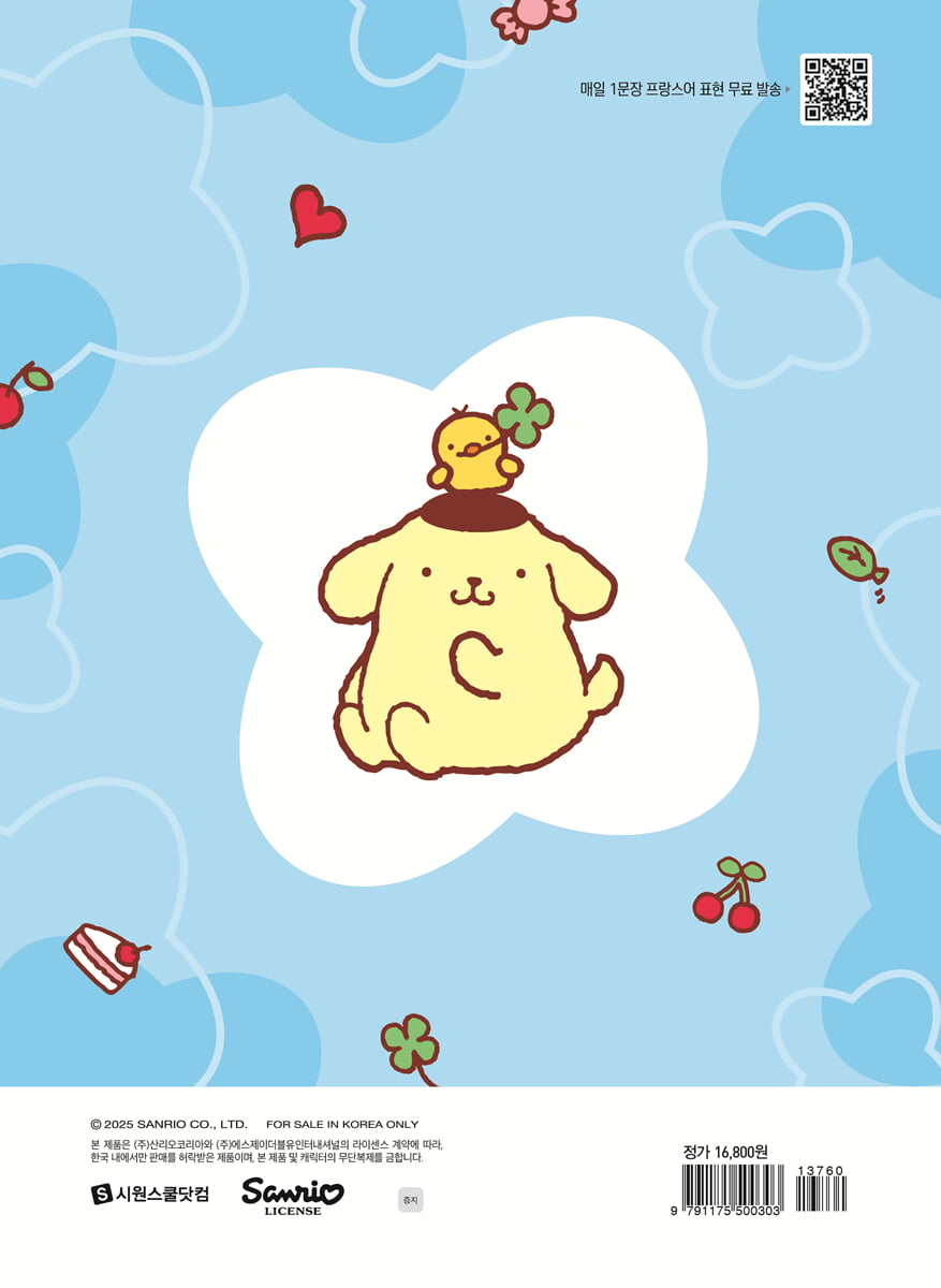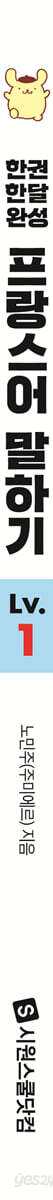 『한권 한달 완성 프랑스어 말하기 Lv. 1』만의 체계적인 구성! 1. 오늘의 주제 해당 Lecon에서 배우게 될 내용을 오늘의 목표를 통해 먼저 확인하면서 프랑스어 학습을 준비해 볼까요? 2. 오늘의 어휘 해당 Lecon 학 습에 앞서 왕초보 단계에서 꼭 알 아야 할 필수 단어들을 먼저 배워 보세요. QR 코드를 통해 음원을 들으며 각 단어의 발음을 정확히 익힌 뒤, 큰 소리로 여러 번 따라 읽으며 자연스럽게 입에 익혀 보세요. 3. 오늘의 핵심 내용 프랑스어 문법, 어렵지 않아요! 각 Lecon에서는 보기 쉽게 정리된 표와 다양한 예문으로 필수 문법을 익힐 수 있어요. 헷갈리기 쉬운 부분과 추가적으로 알아야 할 내용은 〈ATTENTION !〉에서 한 번 더 짚어 드려요. 4. 오늘의 핵심 표현 각 Lecon의 주요 문형이 적용된 다양한 예문으로 프랑스어를 연습해 보세요. 원어민 성우의 음성을 듣고 따라 읽다 보면 어느새 프랑스어 기초 문형을 자연스럽게 마스터하게 될 거예요. 5. 보너스 표현 [오늘의 핵심 내용]과 [오늘의 핵심 표현]에서 배운 문형과 표현에 서 한 걸음 더 나아가 볼까요? 조금 더 풍부한 표현을 통해 프랑스어 실력을 한층 더 업그레이드 할 수 있어요. 6. 오늘의 회화 완성! 기초 회화 실력을 쌓을 수 있는 대화문으로 각 Lecon의 핵심 문장을 자연스럽게 익혀 보세요. 자주 쓰이는 표현으로 실제 상황에서 사용할 수 있는 실용적인 프랑스어 표현을 연습할 수 있어요. 7. 잠깐 복습! 각 Lecon에서 배운 내용에 대한 이해도를 점검하는 연습 문제를 제공합니다. 제시된 문제에 적절한 답을 찾는 과정을 통해 스스로 얼마나 완벽하게 학습 내용을 이해했는지 확인해 보세요. 8. 복습 퀴즈! 앞서 학습한 내용을 종합적으로 복습하면서, 얼마나 잘 이해했는지 확인할 수 있는 문제를 제공합니다. 어렵게 생각하지 마세요! 놓친 부분이 있다면 다시 한번 돌아가서 복습해도 괜찮아요. 자신 있게 도전해 보세요. 학습 효과를 200% 높여주는 『한권 한달 완성 프랑스어 말하기 Lv. 1』만의 특별 혜택! 1. 원어민 성우 음원 제공 원어민 성우의 정확한 발음을 듣고 따라 하며 본 교재의 내용을 반복 연습할 수 있도록 음원을 QR 코드를 통해 제공합니다. 2. 필수 문장 쓰기 노트, 필수 동사 변화표 PDF 본 교재에서 다룬 필수 문장과 필수 동사 변화표를 PDF로 제공합니다. 배운 내용을 PDF로 복습하면서 프랑스어 실력을 탄탄하게 다져 보세요. 3. 저자 직강 동영상 강의 독학을 위한 저자 직강 유료 동영상 강의를 제공합니다. ▶ 해당 도서의 무료 학습 자료와 유료 동영상 강의는 시원스쿨 프랑스어 사이트에서 만나실 수 있습니다. (france.siwonschool.com) |