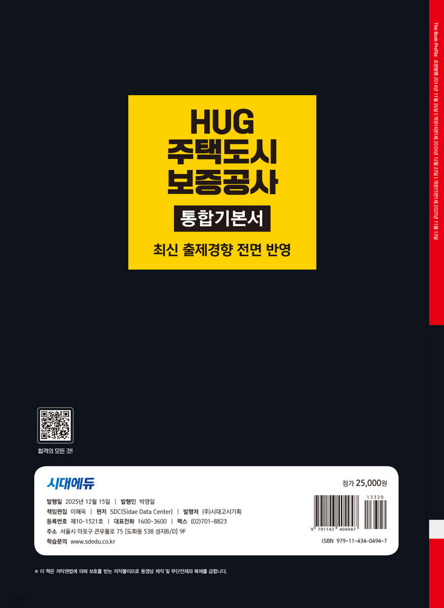 CHAPTER 01 2025년 상반기 NCS 기출복원문제 CHAPTER 02 2025~2024년 전공 기출복원문제 · PART 1 직무적합평가 CHAPTER 01 의사소통능력 대표기출유형 01 문서 내용 이해 대표기출유형 02 글의 주제·제목 대표기출유형 03 문단 나열 대표기출유형 04 내용 추론 대표기출유형 05 빈칸 삽입 대표기출유형 06 문서 작성·수정 대표기출유형 07 맞춤법·어휘 대표기출유형 08 한자성어·속담 대표기출유형 09 경청·의사 표현 CHAPTER 02 수리능력 대표기출유형 01 응용 수리 대표기출유형 02 자료 계산 대표기출유형 03 자료 이해 대표기출유형 04 자료 변환 CHAPTER 03 문제해결능력 대표기출유형 01 명제 추론 대표기출유형 02 규칙 적용 대표기출유형 03 자료 해석 대표기출유형 04 SWOT 분석 대표기출유형 05 창의적 사고 CHAPTER 04 대인관계능력 대표기출유형 01 팀워크 대표기출유형 02 리더십 대표기출유형 03 갈등 관리 대표기출유형 04 협상 전략 대표기출유형 05 고객 서비스 CHAPTER 05 조직이해능력 대표기출유형 01 경영 전략 대표기출유형 02 조직 구조 대표기출유형 03 업무 종류 대표기출유형 04 국제 동향 · PART 2 전공필기 CHAPTER 01 경영 CHAPTER 02 경제 · PART 3 최종점검 모의고사 제1회 최종점검 모의고사 제2회 최종점검 모의고사 제3회 최종점검 모의고사 · PART 4 채용 가이드 CHAPTER 01 블라인드 채용 소개 CHAPTER 02 서류전형 가이드 CHAPTER 03 인성검사 소개 및 모의테스트 CHAPTER 04 면접전형 가이드 CHAPTER 05 주택도시보증공사 면접 기출질문 · 별책 정답 및 해설 Add+ 주요 공기업 기출복원문제 PART 1 직무적합평가 PART 2 전공필기 PART 3 최종점검 모의고사 OMR 답안카드 |